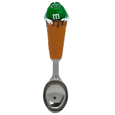 Ice cream just got cooler. This one-of-a-kind M&MS ice cream scoop features Red, Green or Blue sitting inside a textured cone atop a stainless steel scoop.