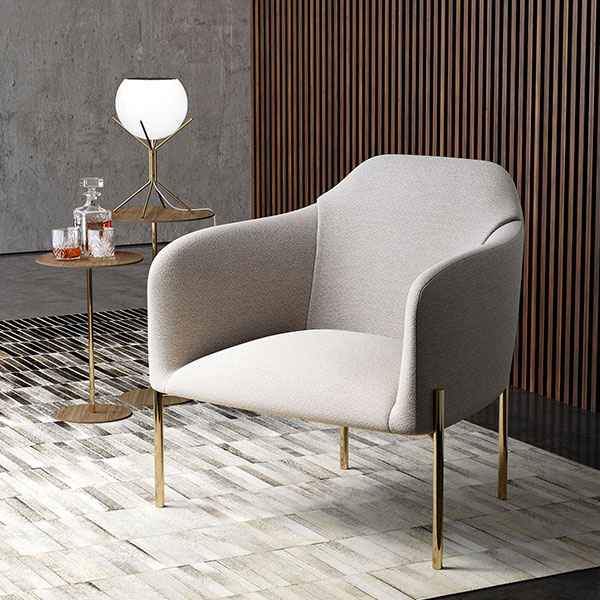 Stately and elegant in stature, the Tiemann Lounge Chair works well in both casual and formal home settings. Lined in Italian-imported woven fabric, the Tiemann features rounded contouring that includes both the armrests and seatback. Below, the Tiemann''s legs are comprised of four ultra-slim finis...more