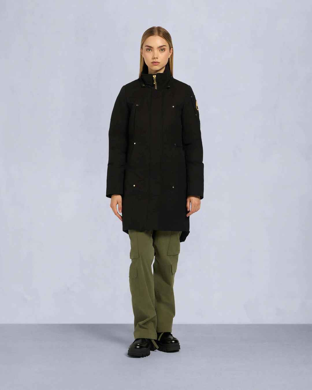 The Gold Stirling Parka Fur is our iconic Stirling Parka with an auric makeover. The silhouette's signature warmth and timeless appeal have been complemented with gold-tone hardware, matching polyester down-proof lining, a removable hood with a contrasting black Blue Fox fur ruff, and a gold-plated ...more