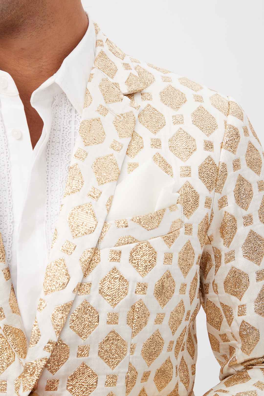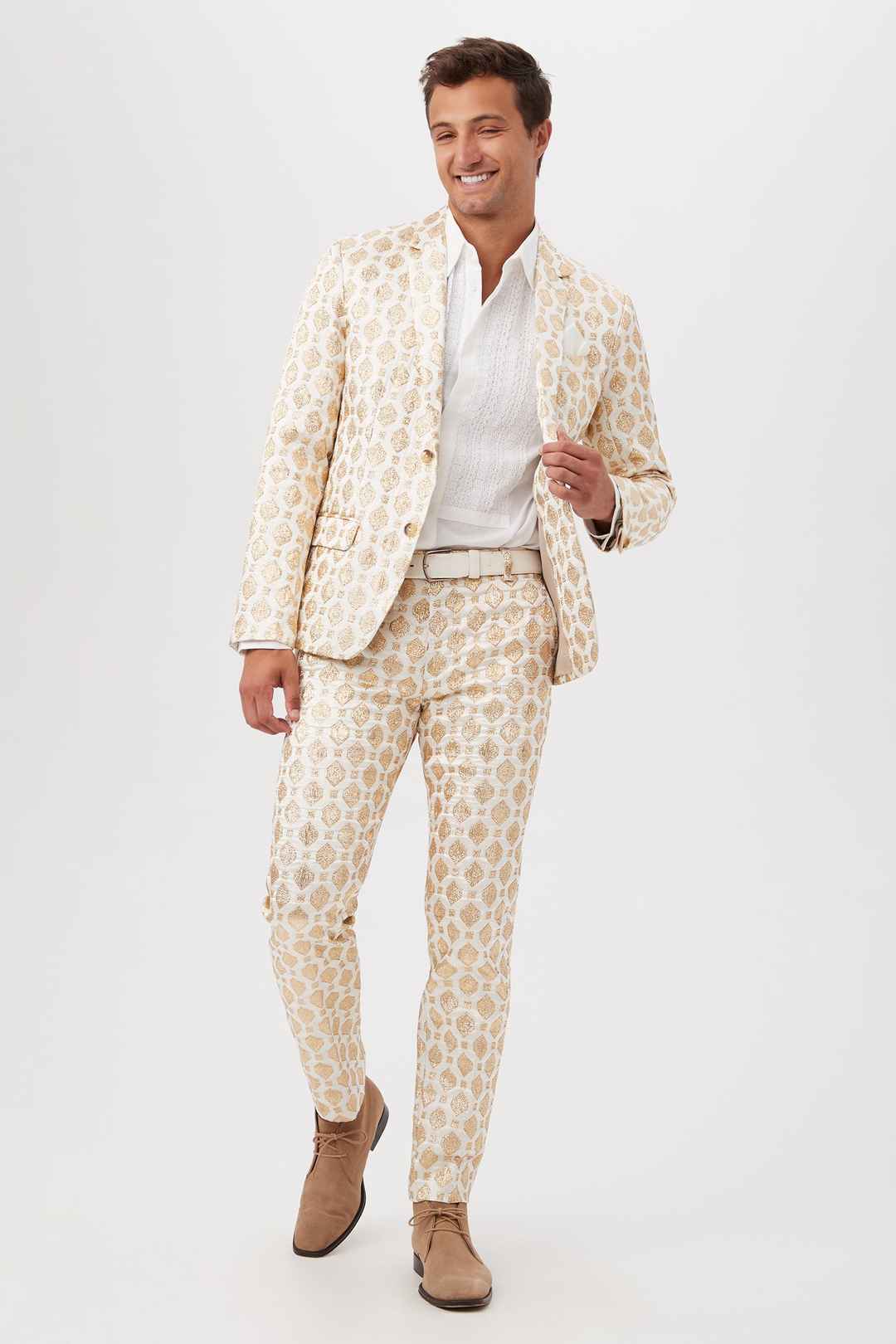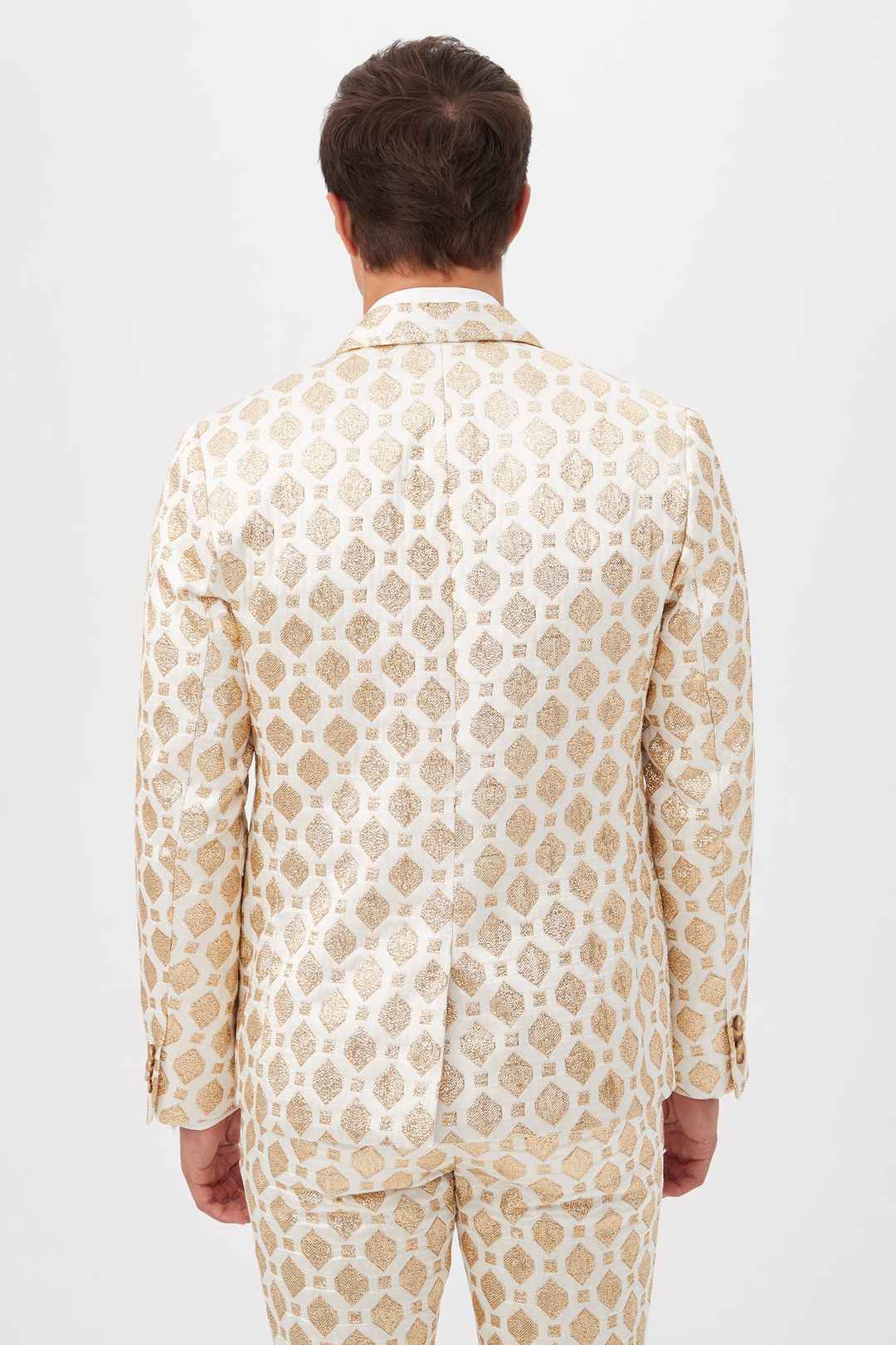 paid linkMr Turk Thurston White And Gold Jacquard Tailored Blazer / Winter White 36