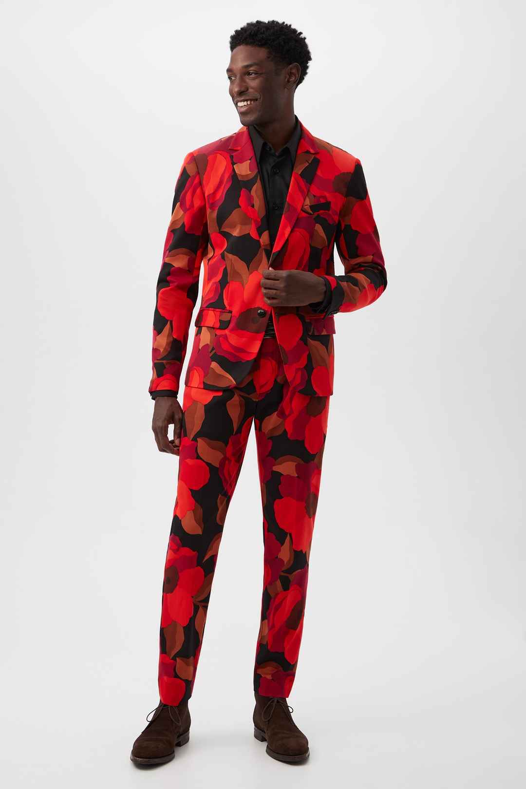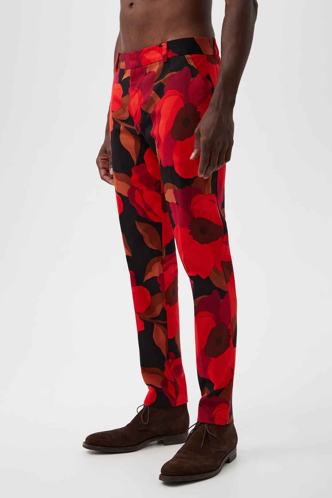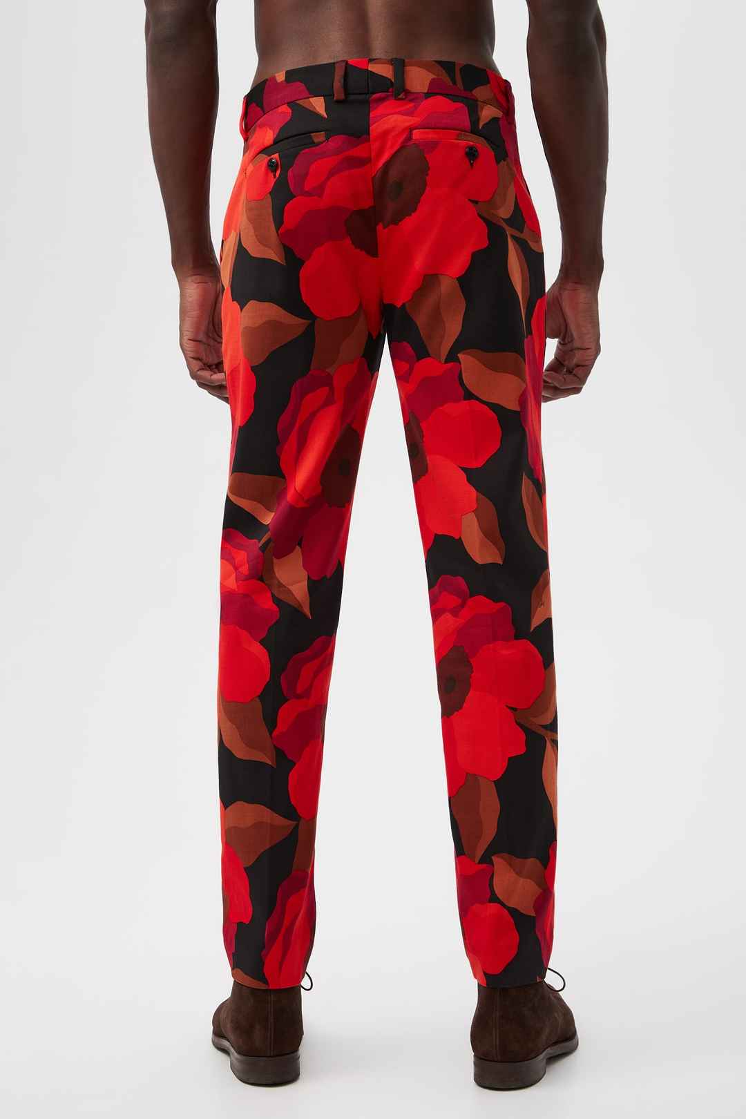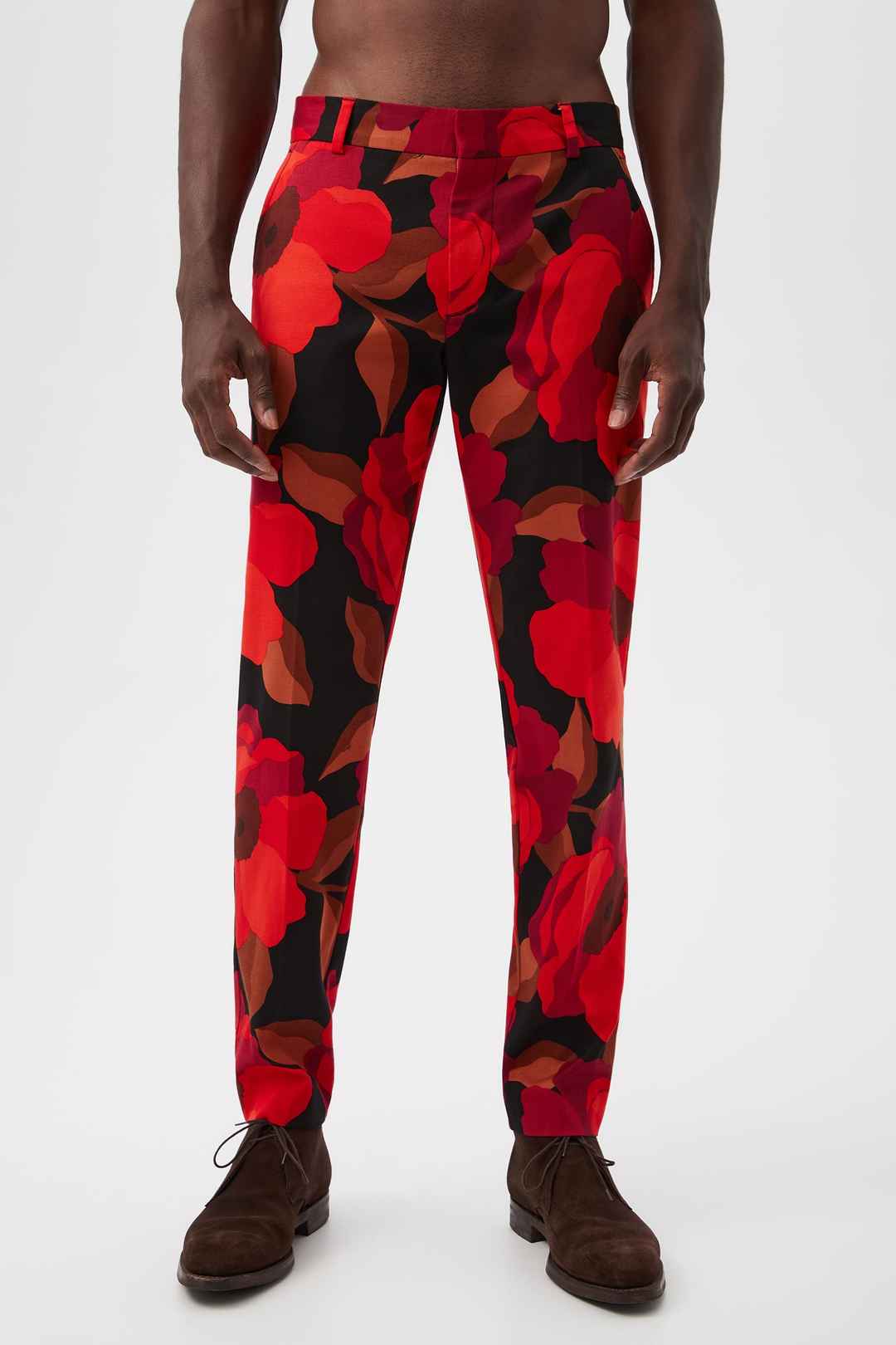These slim trousers in our top-rated fit for men get a bold update in red Faille suiting. With a classic fit and a fun pattern, these colorful men's pants are sure to be a statement piece in your wardrobe. Side slash pockets; Slim fit; Button and zip front closure; Back welt pockets with button; ...more