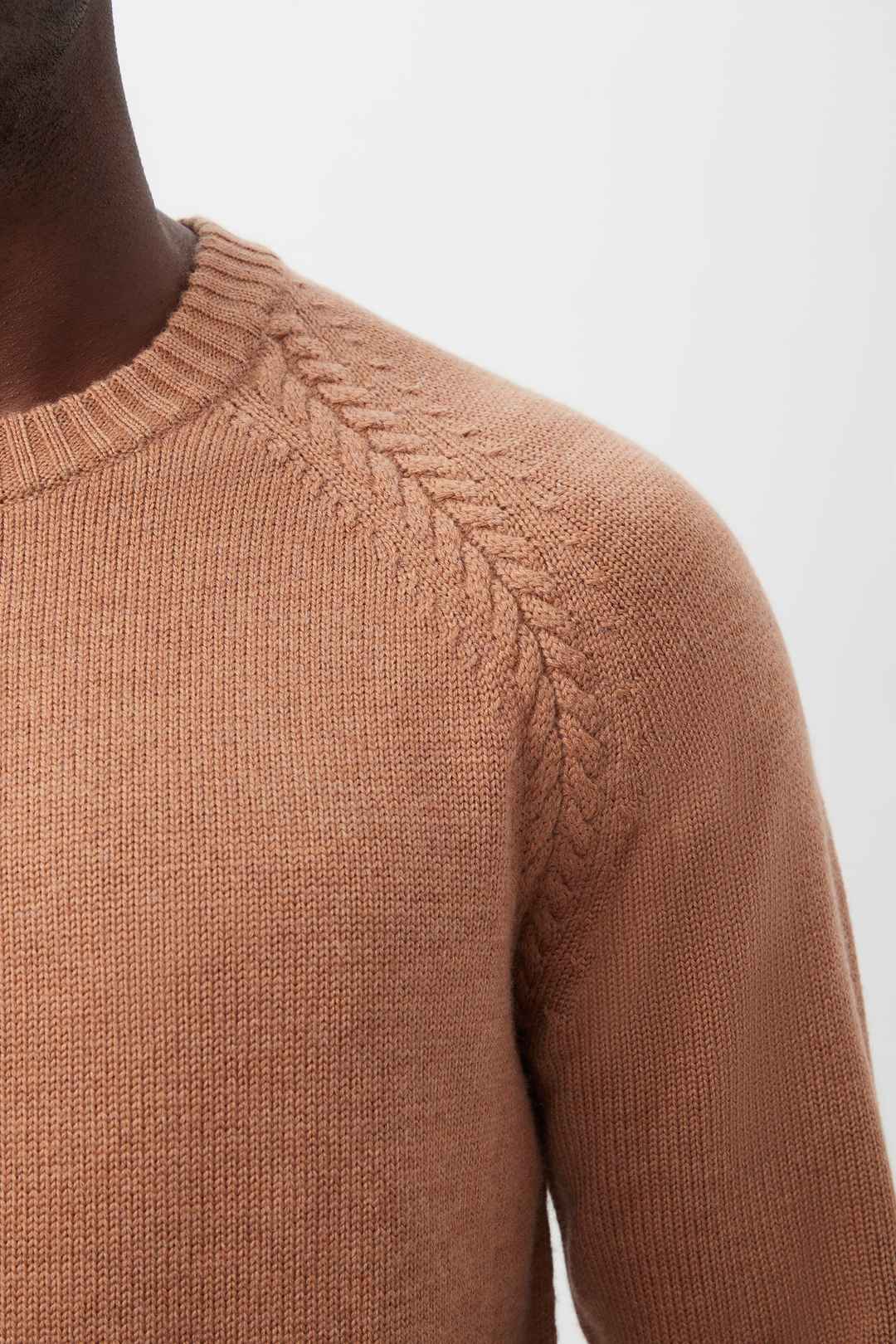 Soft Merino wool adds comfortable softness to this classic long-sleeve pullover sweater with elevated cable knit details. Plus, in Merino wool, this long-sleeve sweater offers luxurious warmth with lightweight breathability - ideal for wearing now and later. Crewneck; Long raglan sleeves; Pullover...more