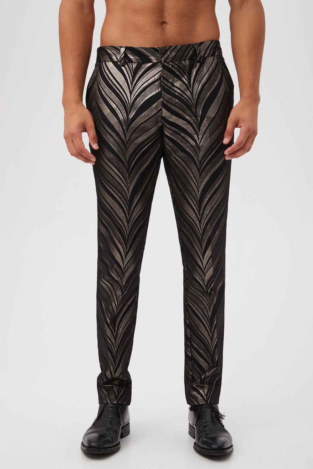 Our top-rated men's trousers are back in a new metallic fabrication, fresh for event season. In bold, metallic chevron jacquard, these flattering, slim-fit pants are just what you need to stand out at your next celebration. Pair these tailored metallic pants with our matching blazer for a complete, ...more