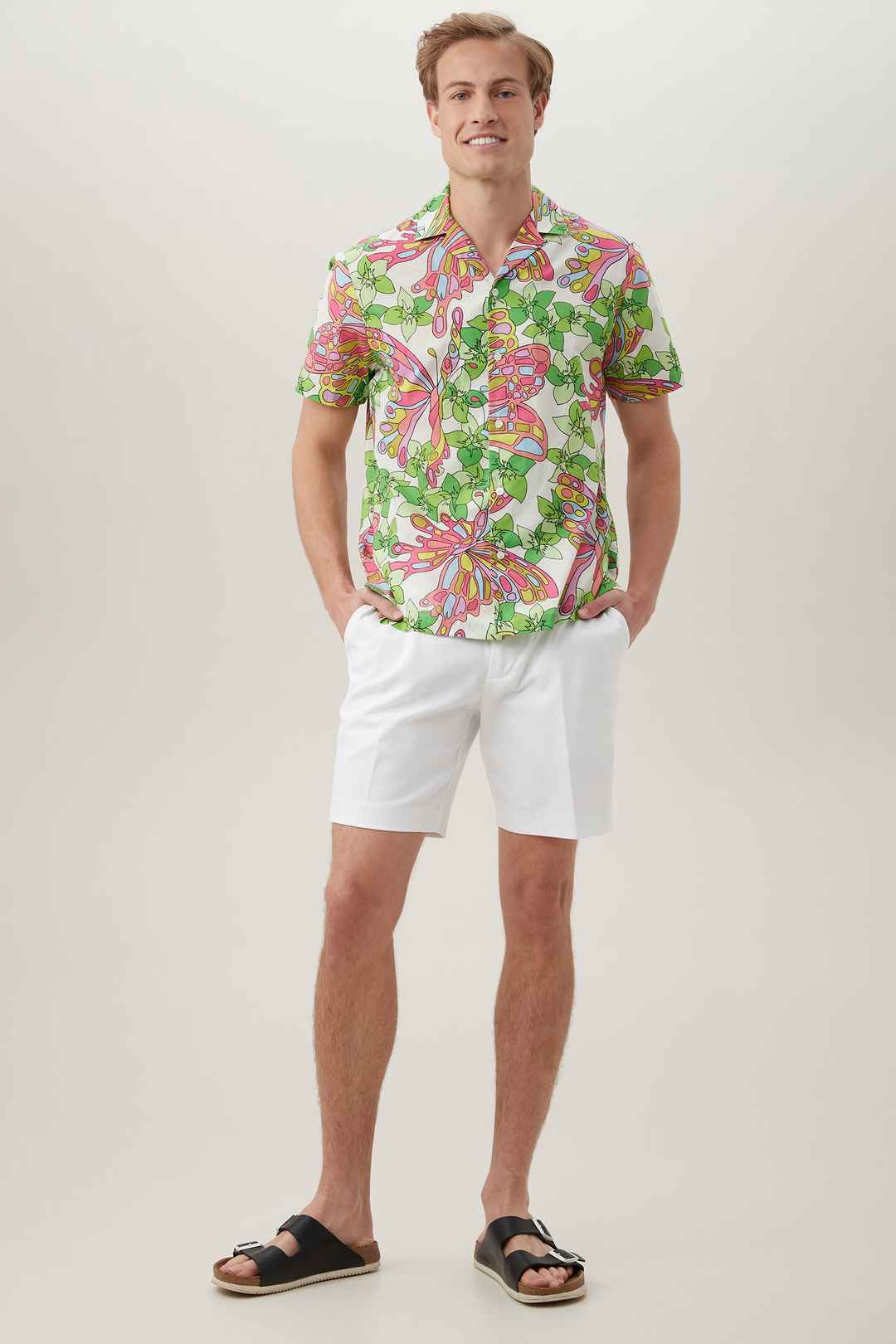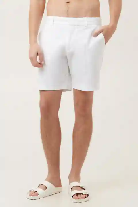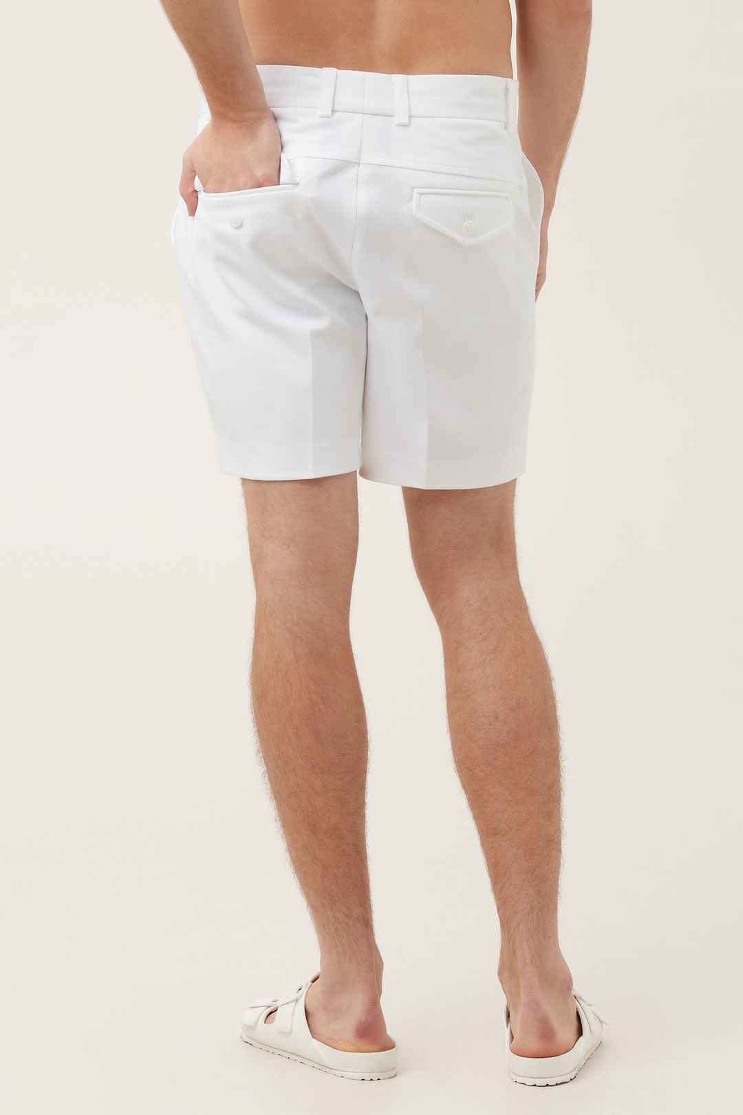 These slim-fit shorts are a timeless choice for all your year-round escapades. With a comfortable stretch and ideal length, these shorts will keep you looking fresh any day of the week. Side slash pockets; Zip and hook front closure; Back flap pockets with button closure; Slim fit; FABRIC:Cotton ...more