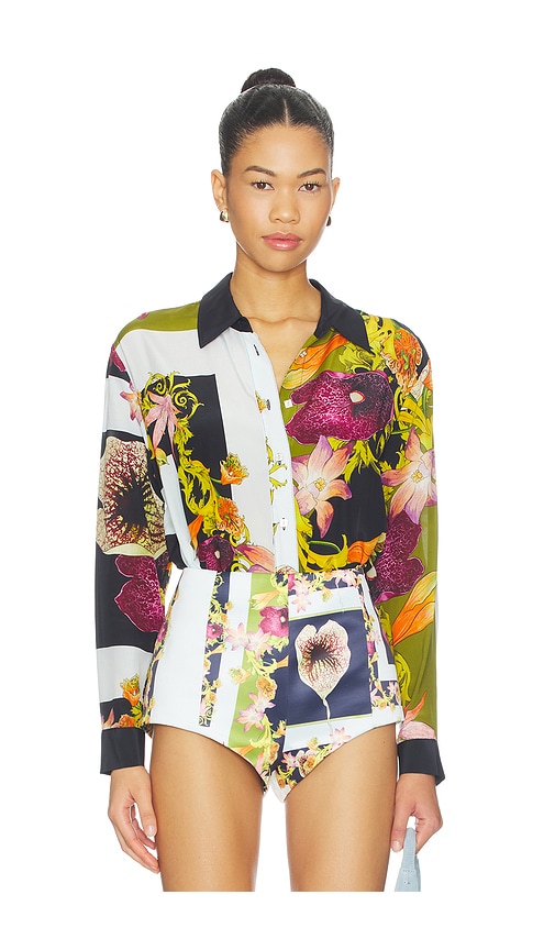 Muma World Understory Classic Shirt in Baby Blue,Olive. - size L (also in XS, S, M) Muma World Understory Classic Shirt in Baby Blue,Olive. - size L (also in XS, S, M) 100% silk. Made in China. Hand wash cold. Front button down closure. Lightweight sateen fabric. Garment is made with a semi-sheer fa...more