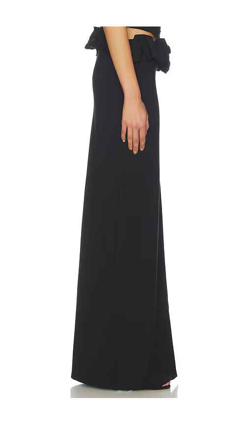 NBD Zoya Maxi Skirt in Black. - size L (also in M, S, XL, XS, XXS) NBD Zoya Maxi Skirt in Black. - size L (also in M, S, XL, XS, XXS) 60% viscose 35% nylon 5% elastane. Made China. Dry clean. Unlined. Pull-on styling Elastic waistband. Stretch jersey textile. Ruffle detail at waistband. Skirt measur...more
