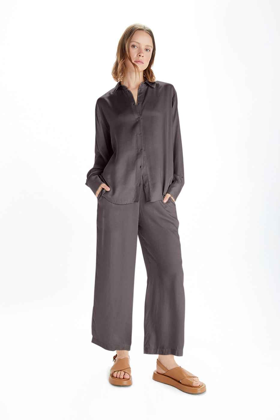 A sleek wardrobe staple, Adrienne fits in everywhere. In our signature satin TENCEL and with a subtly relaxed shape, this versatile blouse is a perfect choice for any occasion. Layer Adrienne up with a blazer jacket for the office, or dress your blouse down wearing it over a tank top as a lightweigh...more