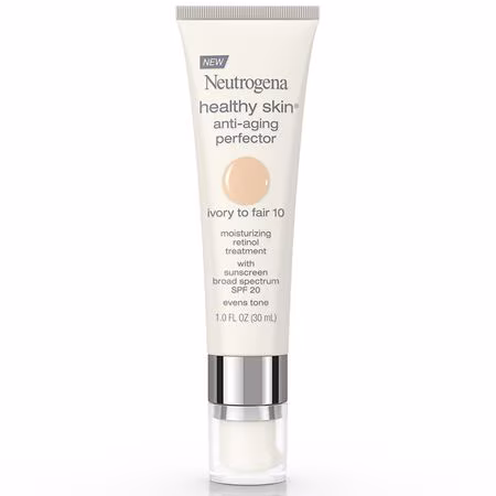 Use Neutrogena Healthy Skin Anti-Aging Perfector Tinted Facial Moisturizer with SPF 20 sunscreen to help reduce the appearance of fine lines. This all-in-one daily moisturizer combines the anti-aging properties of retinol with an SPF 20 moisturizer to offer blendable sheer coverage that helps even t...more