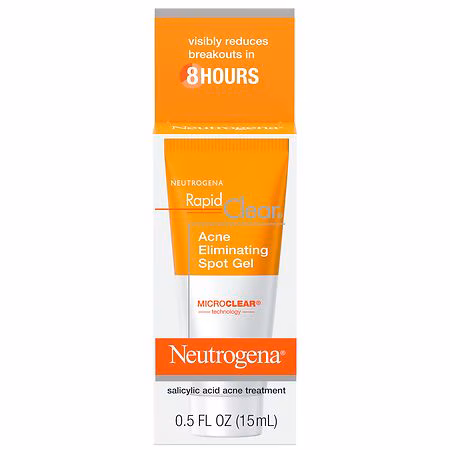0.5-fl. oz tube of Neutrogena Rapid Clear Acne Eliminating Spot Gel with Witch Hazel to visibly reduce breakouts Acne treatment is clinically proven to reduce pimple size, swelling, and redness in 8 hours Goes on clear while the maximum-strength formula clears and helps prevent emerging breakouts Sp...more
