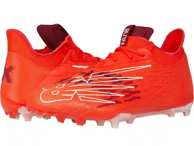 Move with ease wearing the sporty New Balance BURNX3 Cleats. Textile and synthetic upper. Textile lining and removable insole. Knit upper with a kinetic stitch design. Lace-up closure for a secure fit. Achilles pads that offer comfort to the heels. Hybrid tongue construction. Low-cut collar. TPU mol...more