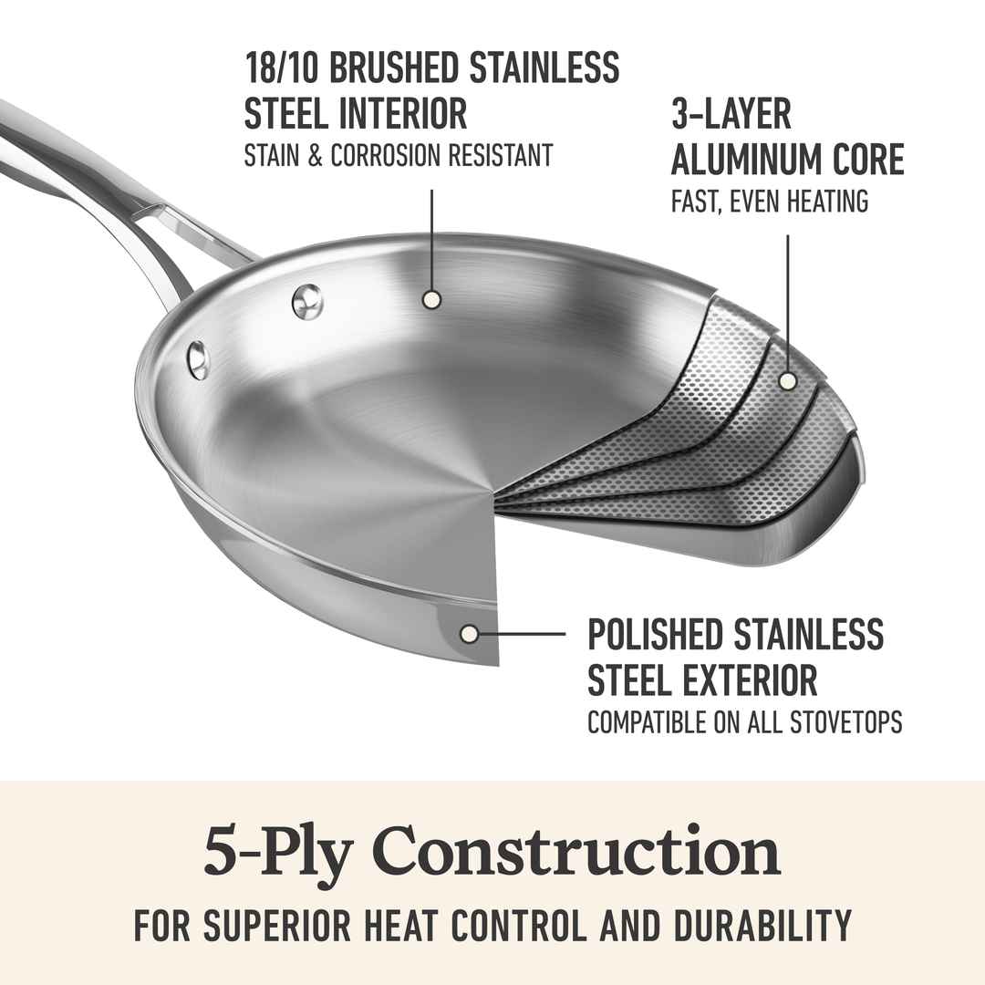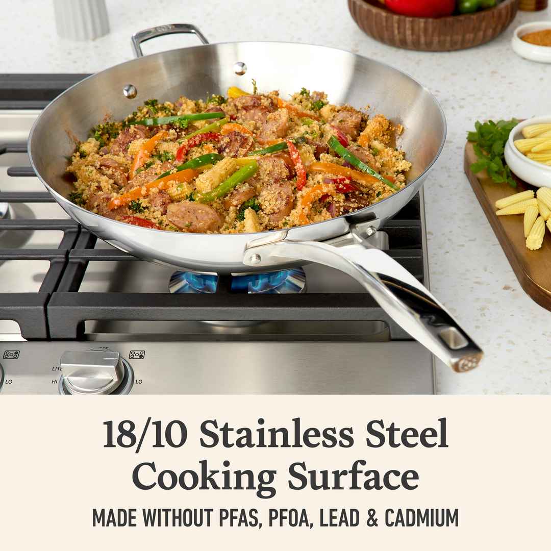 Designed to resist denting and warping, this cookware features ultra-durable, non-toxic, 5-layer construction. Its heat-responsive aluminum core and Calphalon Turbo Temp technology heats up 20% fasterso you can get cooking faster. Premier Stainless Steel 13" Wok
