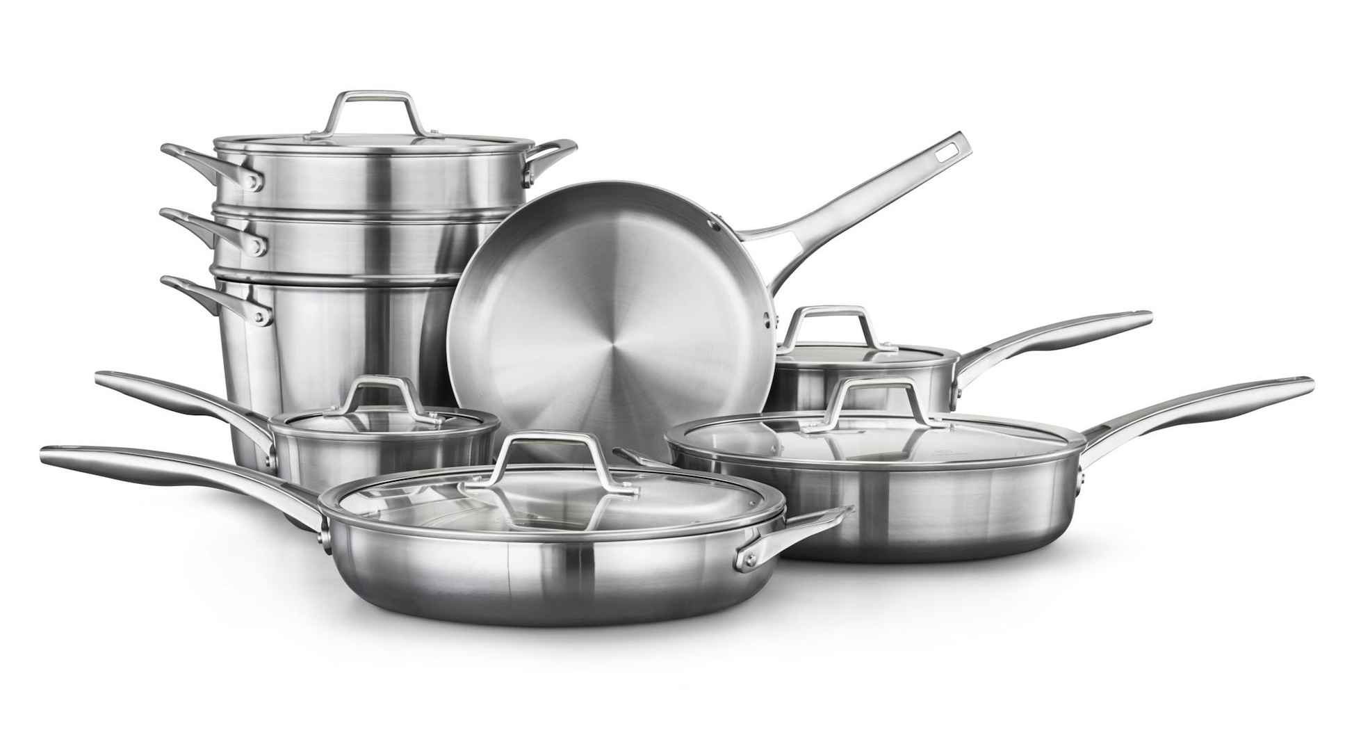 Calphalon Premier Stainless Steel Cookware features a 3-layer metal construction that distributes heat evenly, so you can brown, sear, and saut with consistency and confidence. Oven-safe up to 450 degrees F and dishwasher-safe. Premier Stainless Steel 13-Piece Set