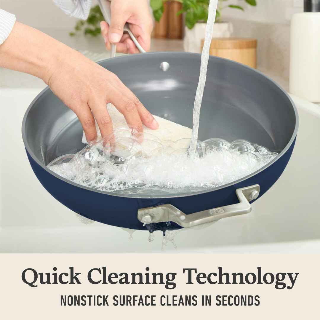 Style and durability come together to create Calphalon Premier Ceramic Nonstick Cookware. Designed for home cooks, this frying pan will inspire your best culinary creations. When you're finished, cookware wipes clean in seconds with Quick Cleaning Technology. Premier Ceramic Nonstick 12" Frying Pan ...more