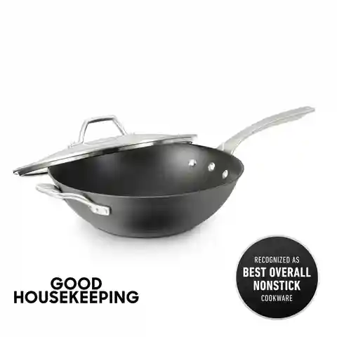 Signature Hard-Anodized Nonstick 12-Inch Flat-Bottom Wok with Cover