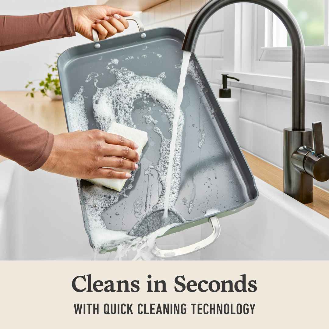 This Calphalon Ceramic Nonstick cookware is perfect for everyday cooking, and wipes clean in seconds with Quick Cleaning Technology, so you can spend more time cooking, and less time cleaning. Calphalon Ceramic Nonstick Double Stovetop Griddle, Silver Ash