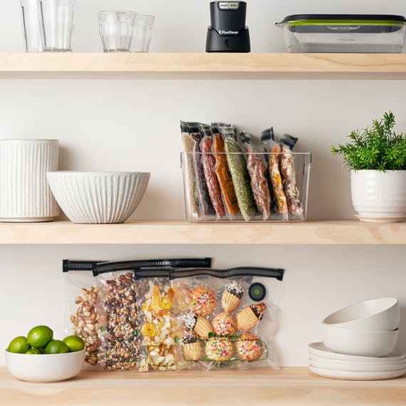 These FoodSaver Reusable Zipper Bags can be used over and over to vacuum seal your favorite foods and more. They're easy to hand-wash clean and safe for use in the freezer, microwave, and for sous vide cooking. | FoodSaver Reusable Quart Vacuum Zipper Bags, for Use with FoodSaver Handheld Vacuum Sea...more