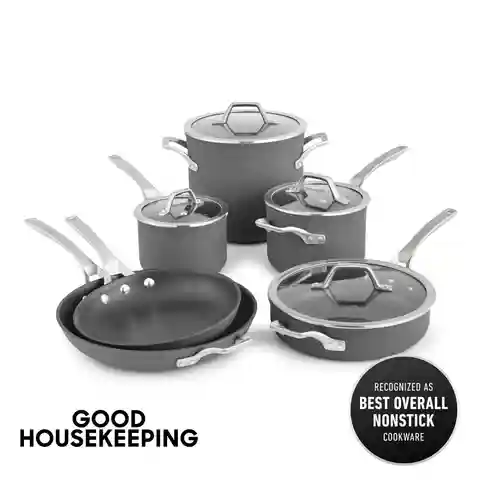 Calphalon Signature Hard-Anodized Nonstick Cookware delivers a 1.5x more durable nonstick interior (vs Calphalon Classic) for effortless food release. Metal-utensil-safe, oven-safe up to 500 degrees F, and dishwasher-safe. Features stay-cool long handles. Signature Hard-Anodized Nonstick 10-Piece Co...more