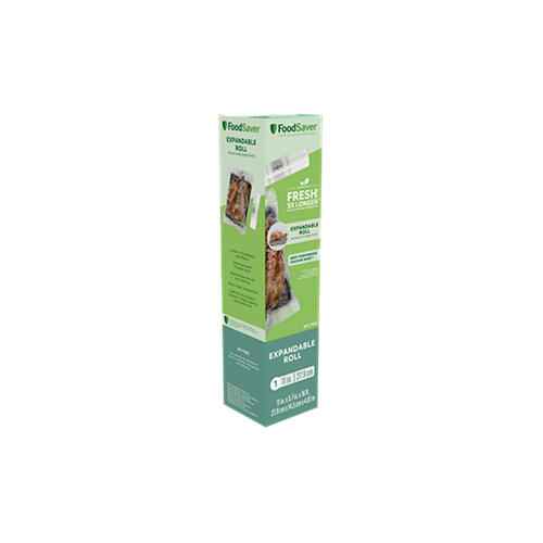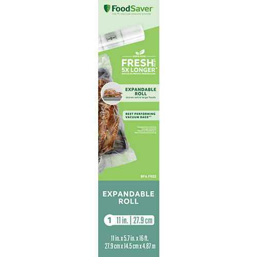 Keep foods fresh up to 5X longer with the FoodSaver Expandable Vacuum Seal Roll. Durable, multi-ply material creates an air-tight seal to lock in freshness and taste. Designed for large food items such as roasts, whole turkeys and casseroles. | FoodSaver 11" x 16' Expandable Vacuum Seal Roll