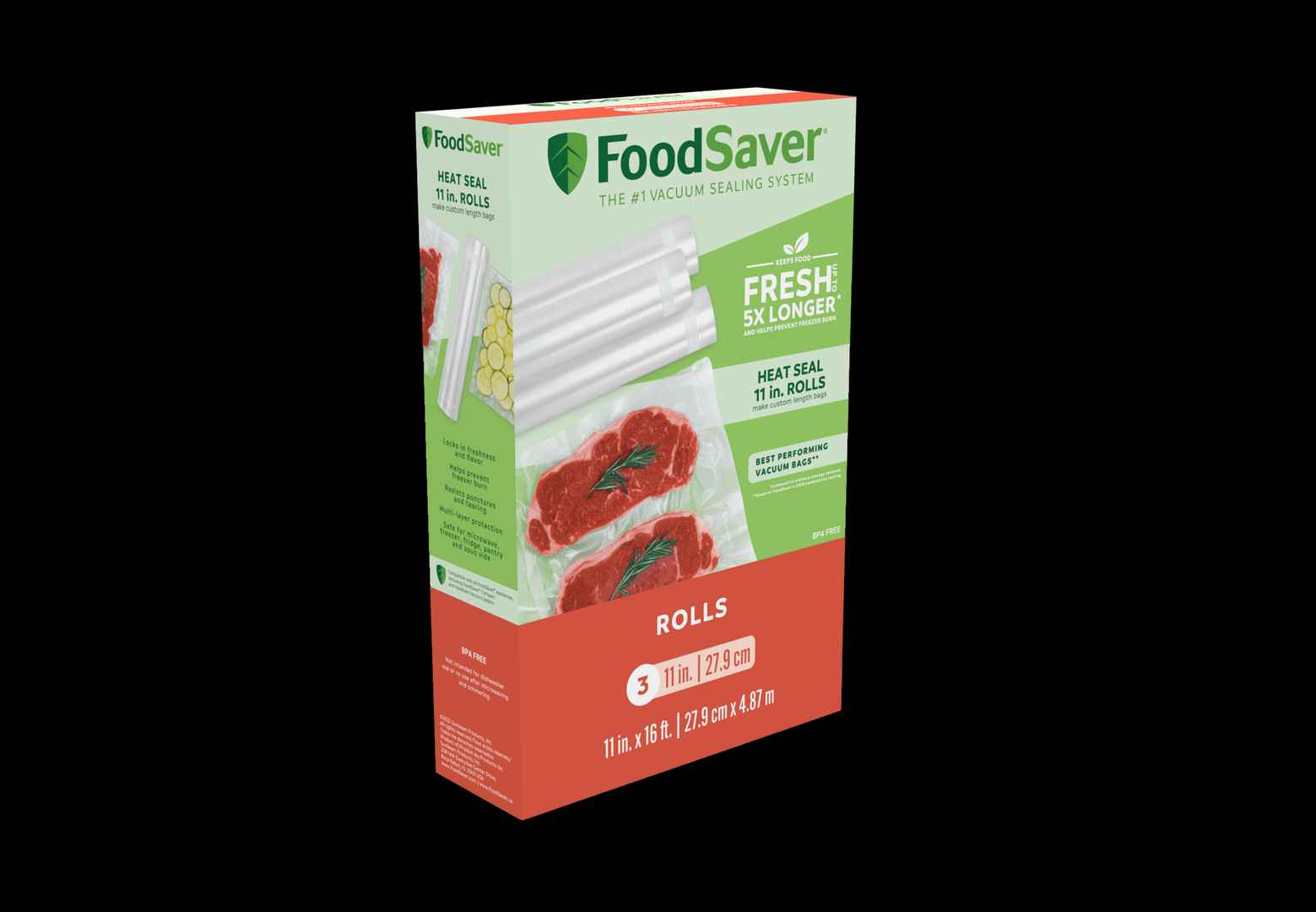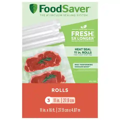 Keep foods fresh up to 5X longer with the FoodSaver Vacuum-Seal Roll. Durable, multi-ply material creates an air-tight seal to lock in freshness and taste. | FoodSaver 11" x 16' Vacuum Seal Roll, 3 Pack