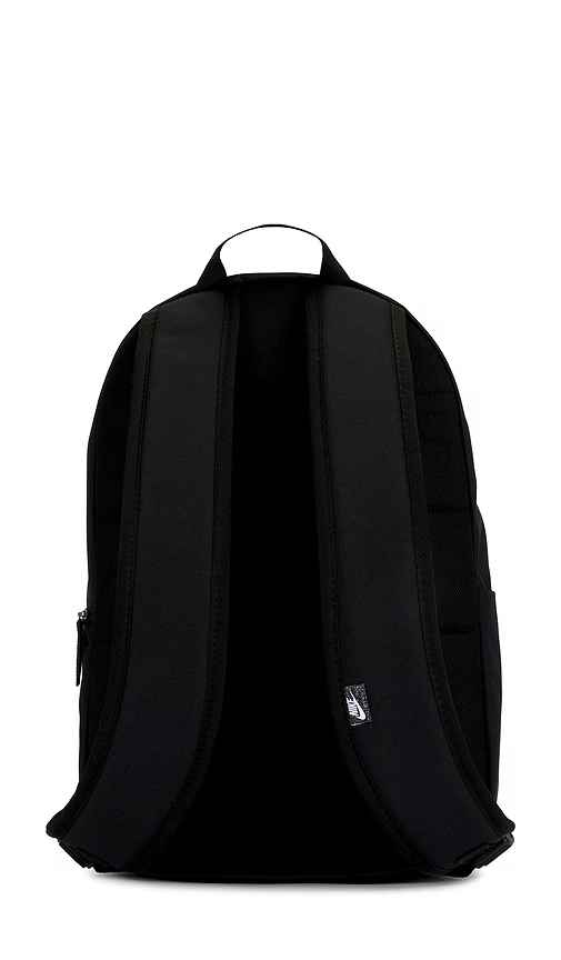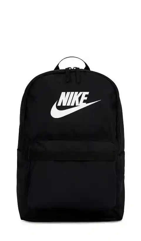 Nike Backpack in Black. Nike Backpack in Black. Twill exterior with textile lining. Top wrap around zip closure. One main compartment. One exterior zip pouch. Measures approx 14 W x 20 H x 9 D. NIKR-MY35. DC4244-010. Centered around humanity and athletic innovations, Nike believes that if you have a...more