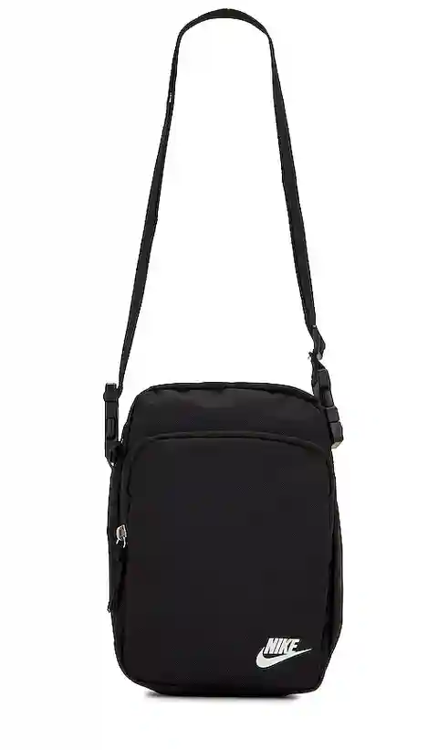 Nike Heritage in Black. Nike Heritage in Black. 100% polyester. Made in Indonesia. Zip top closure. One main compartment. Single interior slip pocket. Exterior zip pocket. Removable shoulder strap with buckle closure. Dimensions: 9 H x 7 W x 3 D Detachable and adjustable shoulder strap with a 12 dro...more