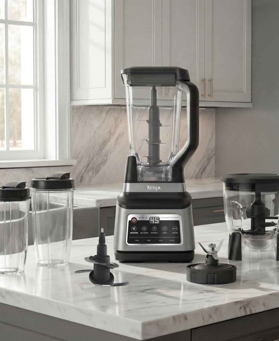 Powerful versatility drives this Ninja Professional Plus kitchen system, featuring preset programs for intuitive operation. Total Crushing Blades handle ice with strength, and the precision processor bowl supports even chopping and dough mixing. Single-serve cups with spout lids offer convenient por...more