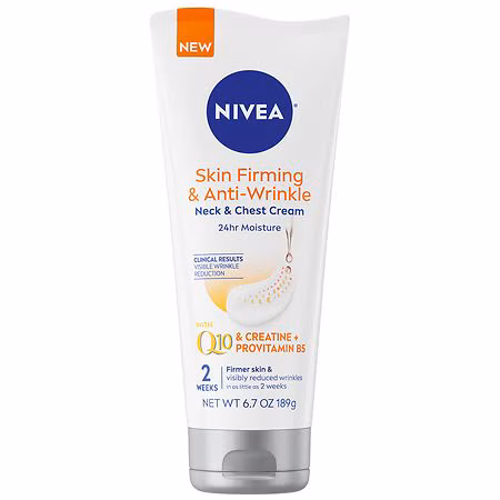 One 6.7 ounce tube of NIVEA Skin Firming and Anti Wrinkle Neck and Chest Cream Clinically shown reduce the look of wrinkles on the neck and chest in as little as two weeks when used twice daily Reduces the look of crepey skin and wrinkles and improves the skin's elasticity with regular use Skin firm...more
