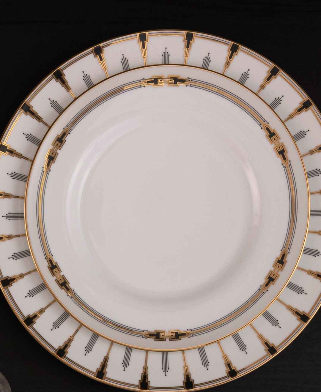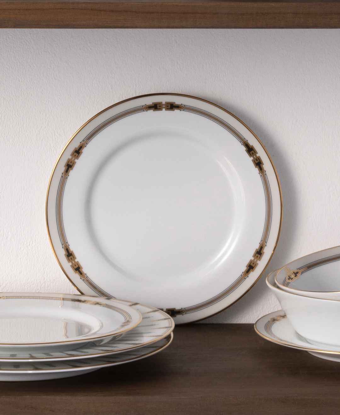 Enhance course presentation with this Noritake Empire Gold salad plate set, which showcases crisp Deco motifs that elevate table settings. White porcelain finished with gold accents balances daily functionality with visual sophistication.