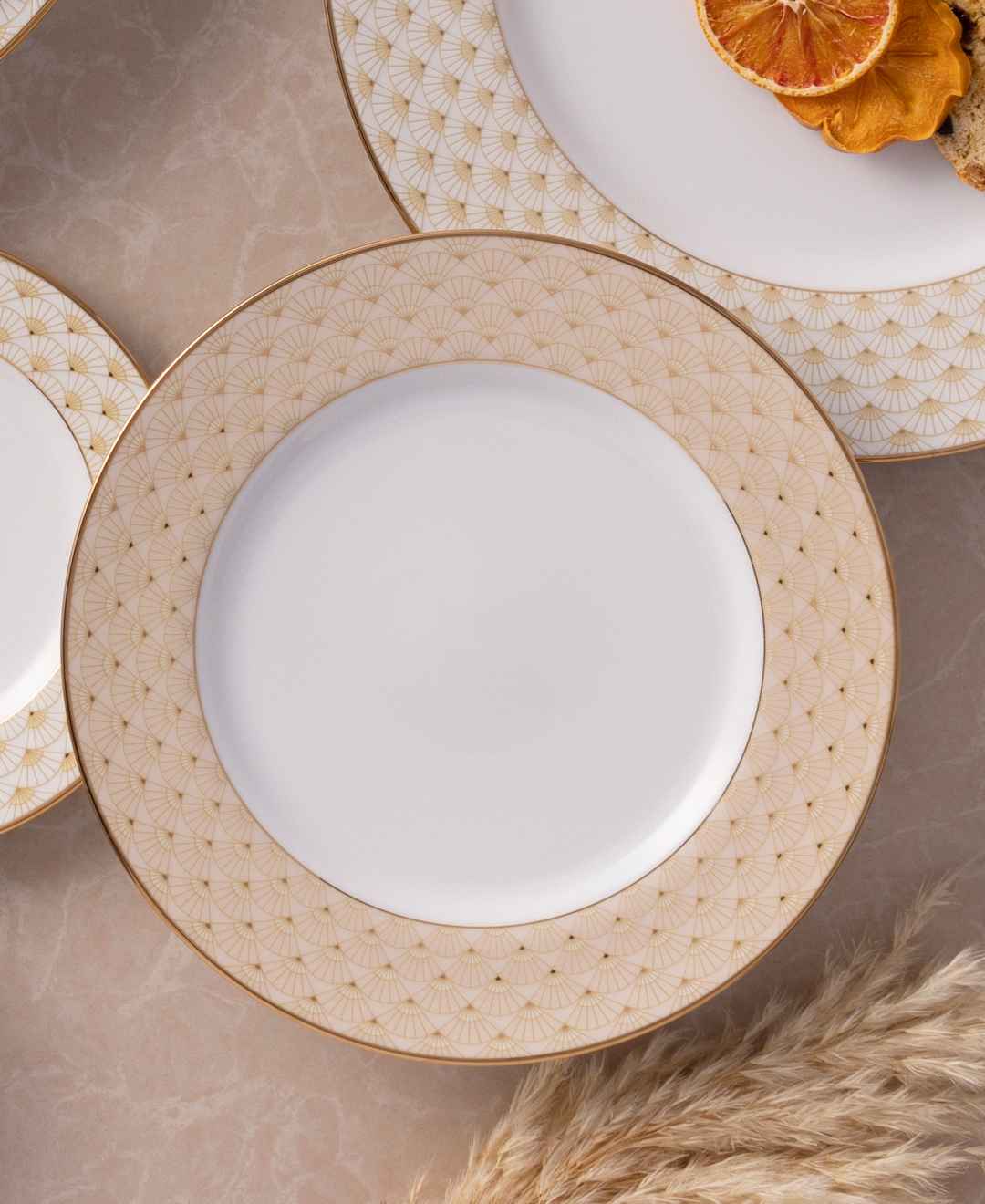 Elevating lighter courses, this Noritake Trocadero salad plates set displays geometric patterns that add dimension to the table. Crafted in porcelain with gold banding, they deliver dependable performance with decorative flair.
