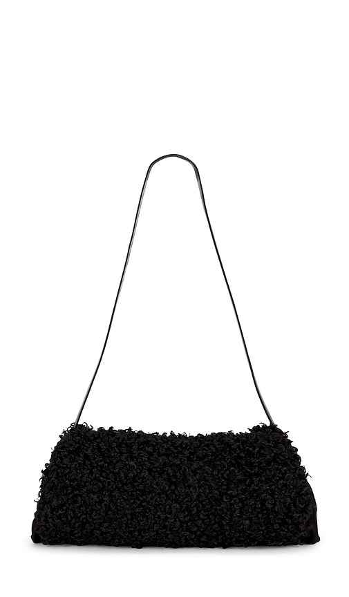 Norma Kamali Muff Bag in Black. Norma Kamali Muff Bag in Black. Faux fur exterior with faux leather trim and textile lining. Top zipper closure. One main compartment. Arm cuffs at sides for hand warmth. Integrated faux leather shoulder strap. style runs large, size down. Measures approx 15 W x 7.5 H...more