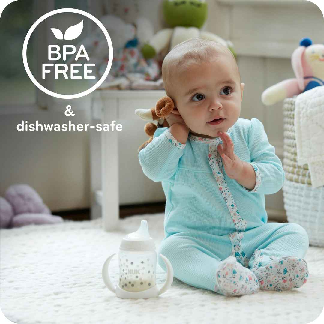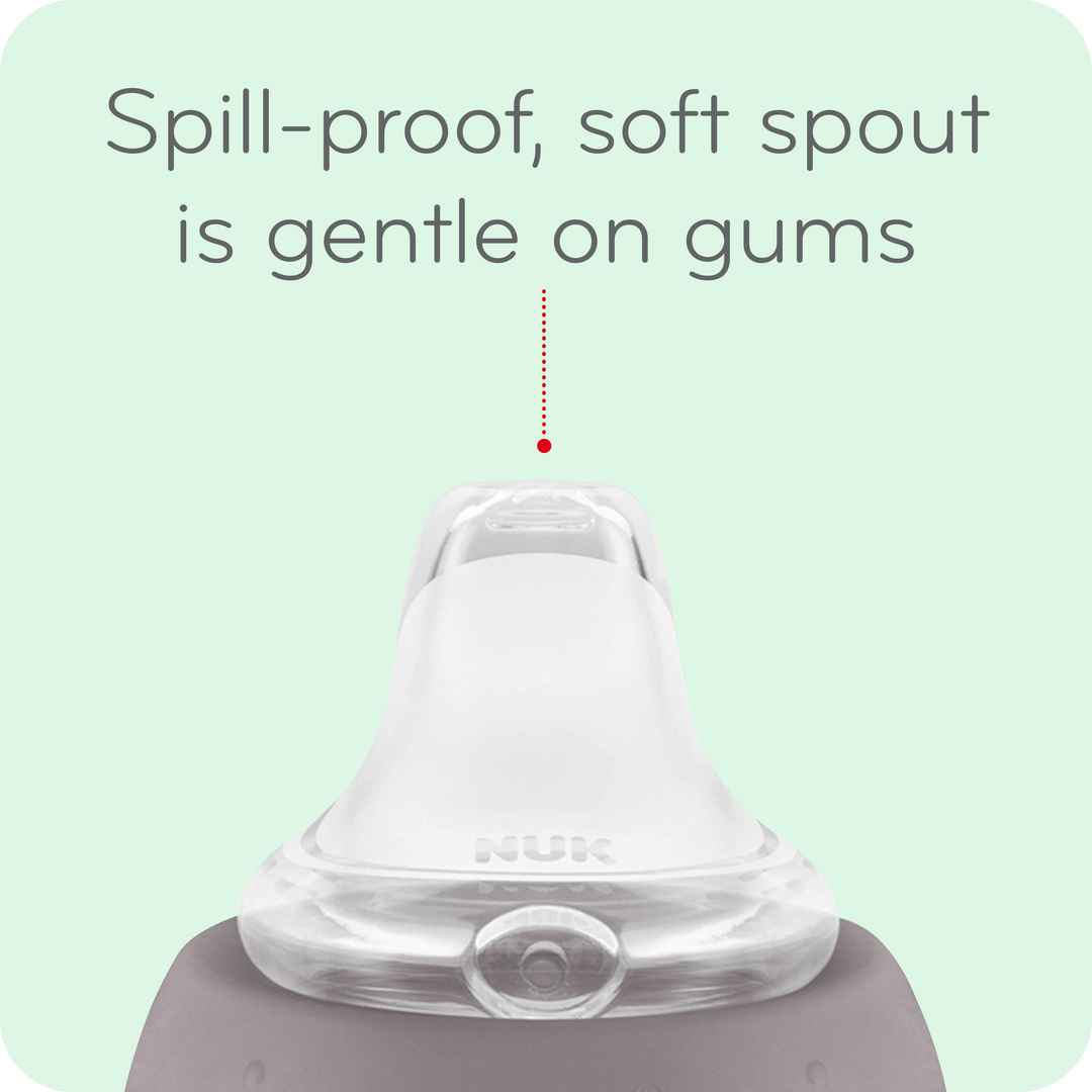 The NUK Learner Cup easily promotes babys transition from breast or bottle to cup. It features a spill-proof soft spout that is gentle on teeth and gums and easy-to-grip, removable handles that your growing child will love! The NUK Learner Cup easily promotes babys transition from breast or bottle t...more