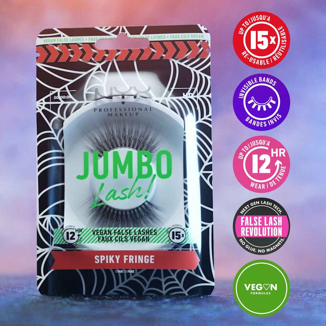 Introducing our new Jumbo Lash False Eyelashes with full-body, spiky fringe glam! These innovative false lashes are stackable, lightweight, comfortable, and reusable up to 15x. Serve jumbo attitude all day with up to 12 hour wear. Keep em guessing with invisible bands. Whether you re creating a pro ...more