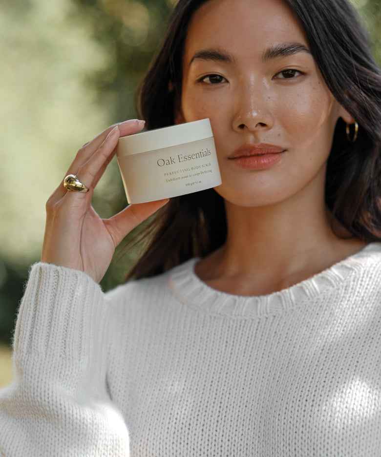 A deeply hydrating exfoliating scrub that smooths and softens skin for an at-home spa experience. | Oak Essentials Perfecting Body Scrub