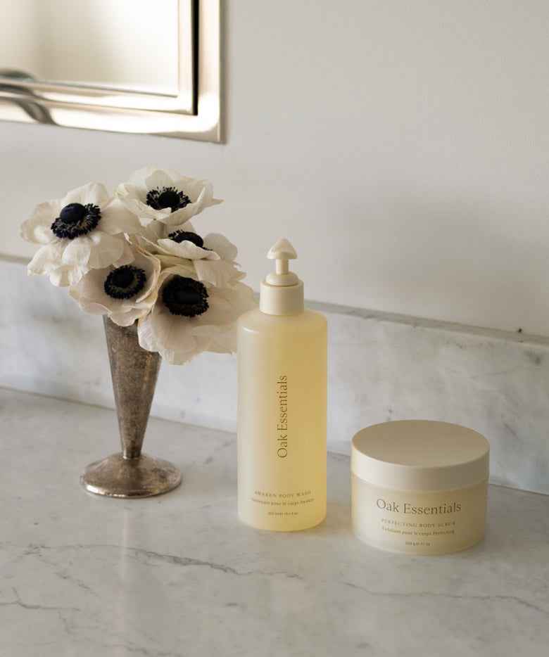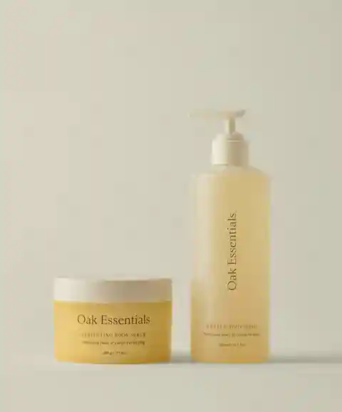 A duo of everyday essentials designed to hydrate, cleanse, and gently exfoliate for a healthy glow with every shower. | Oak Essentials Fresh Start Set