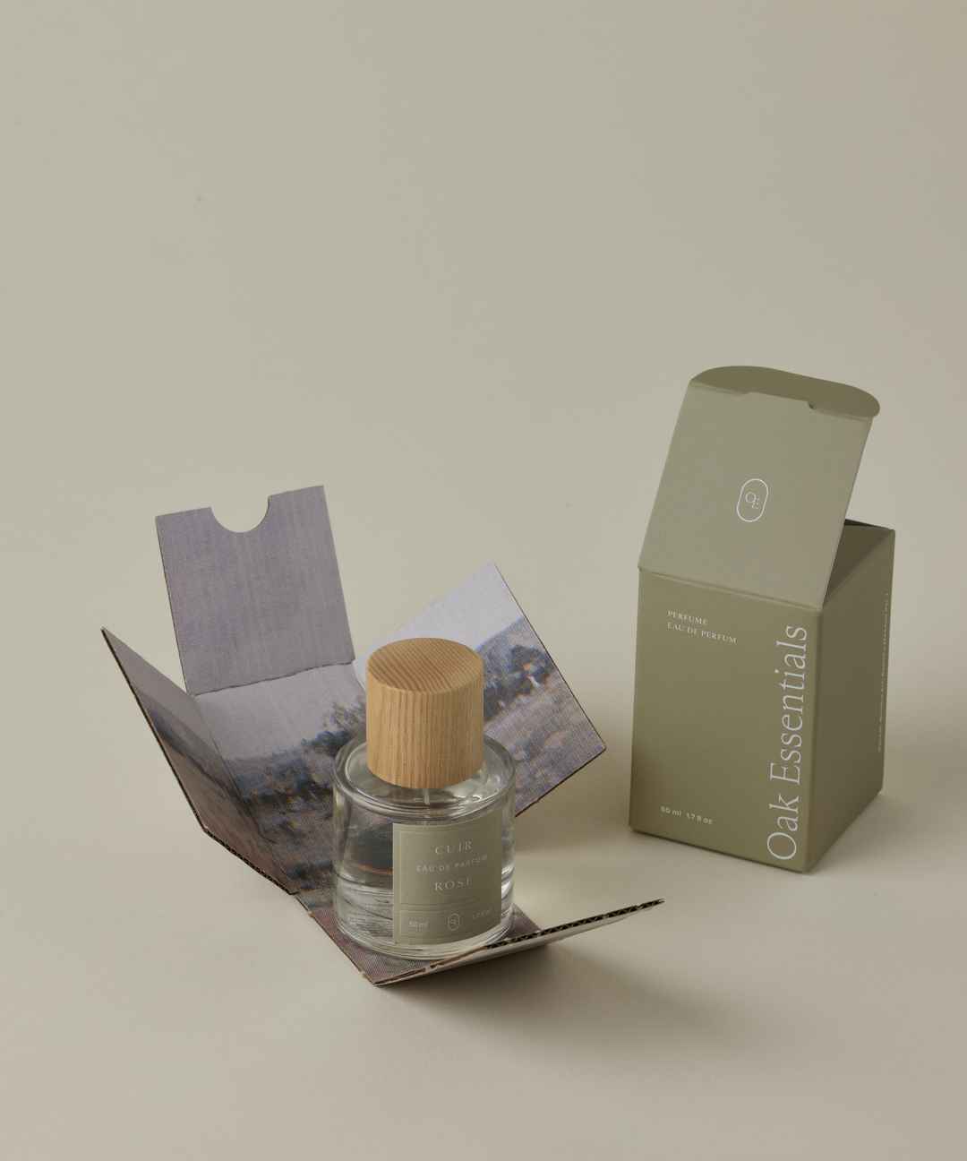 A clean eau de parfum with floral and woody notes that seamlessly melt into skin for a natural fragrance thats signature to each wearer. | Oak Essentials Cuir Rose Eau De Parfum