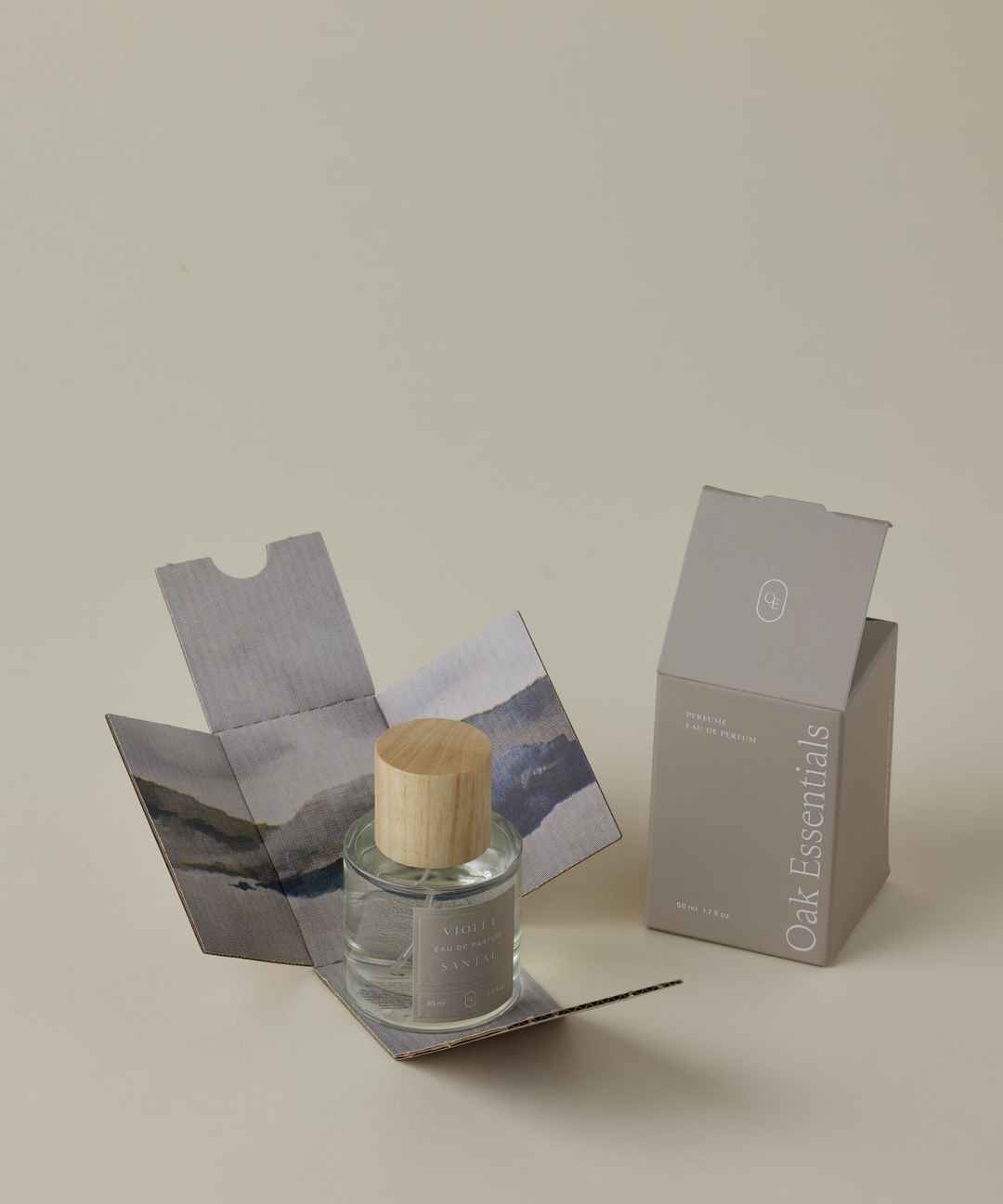 A clean eau de parfum with woody and floral notes that seamlessly melt into skin for a natural fragrance thats signature to each wearer. | Oak Essentials Violet Santal Eau De Parfum