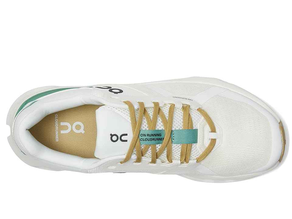 On Cloudrunner 2 - Men's Shoes : Undyed/Green : The primary materials that compose this product contain a minimum of 20 percent recycled content. ; ; Best for Running, Road running. ; Experience the euphoria of every stride wearing On Cloudrunner 2, the ultimate supportive and feel-good running shoe...more