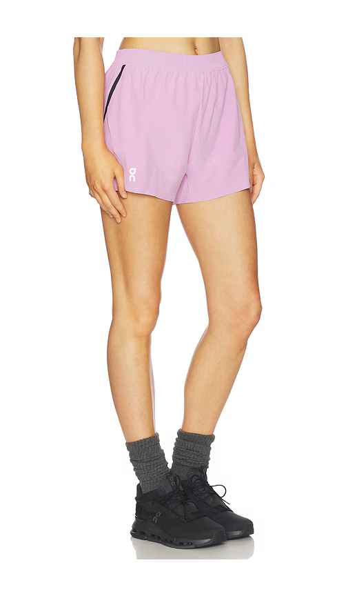 On Train Short in Pink. - size L (also in M, S, XL, XS) On Train Short in Pink. - size L (also in M, S, XL, XS) Self: 86% recycled polyester 14% elastane Pocketing: 100% recycled polyester Inner Brief: 88% recycled polyester 12% elastane. Made in Vietnam. Machine wash cold. Pull-on styling with inne...more
