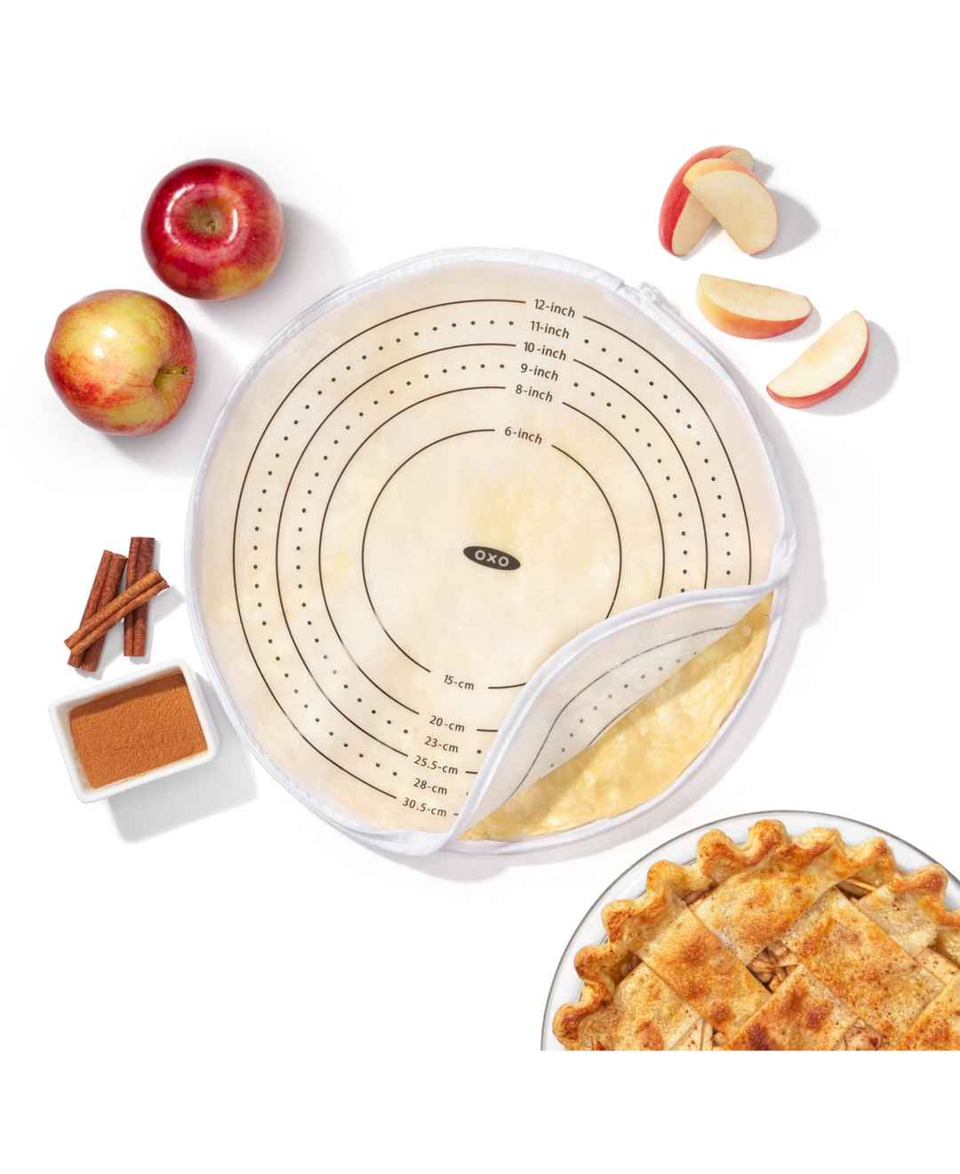 Roll consistently thick pizza crust, pies or cookies and easily transfer the dough with this bag from Oxo. Measurement markings line the silicone surface, offering additional guidance