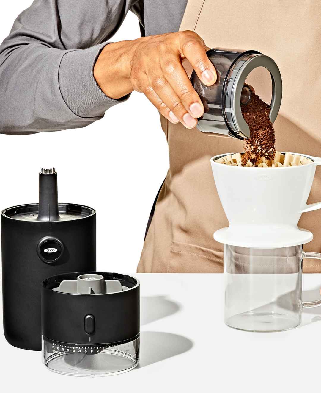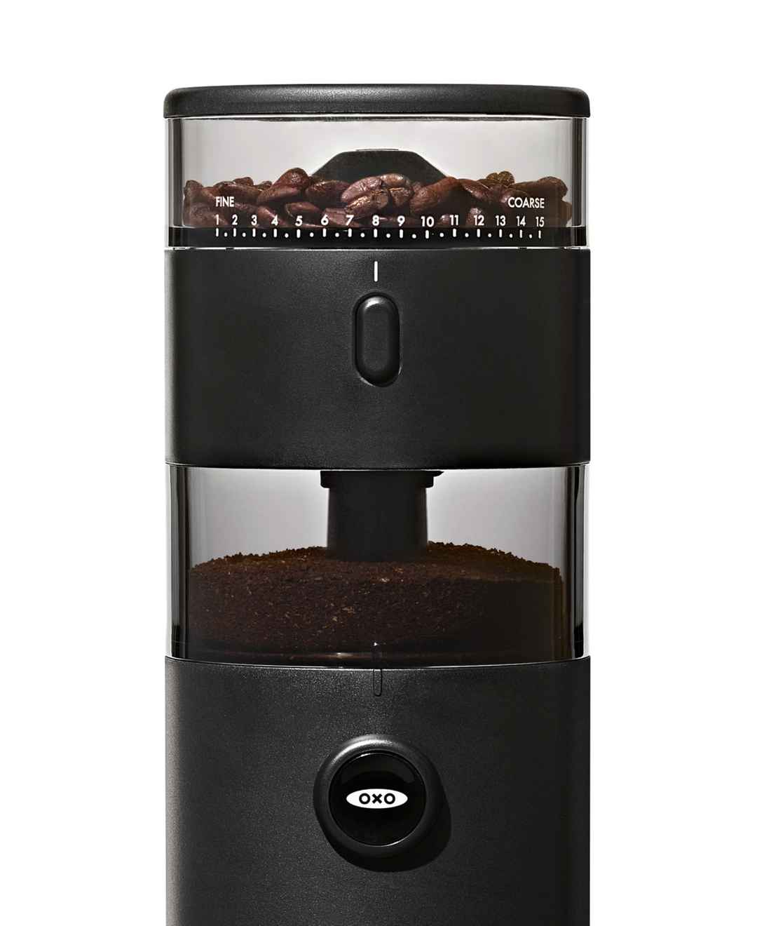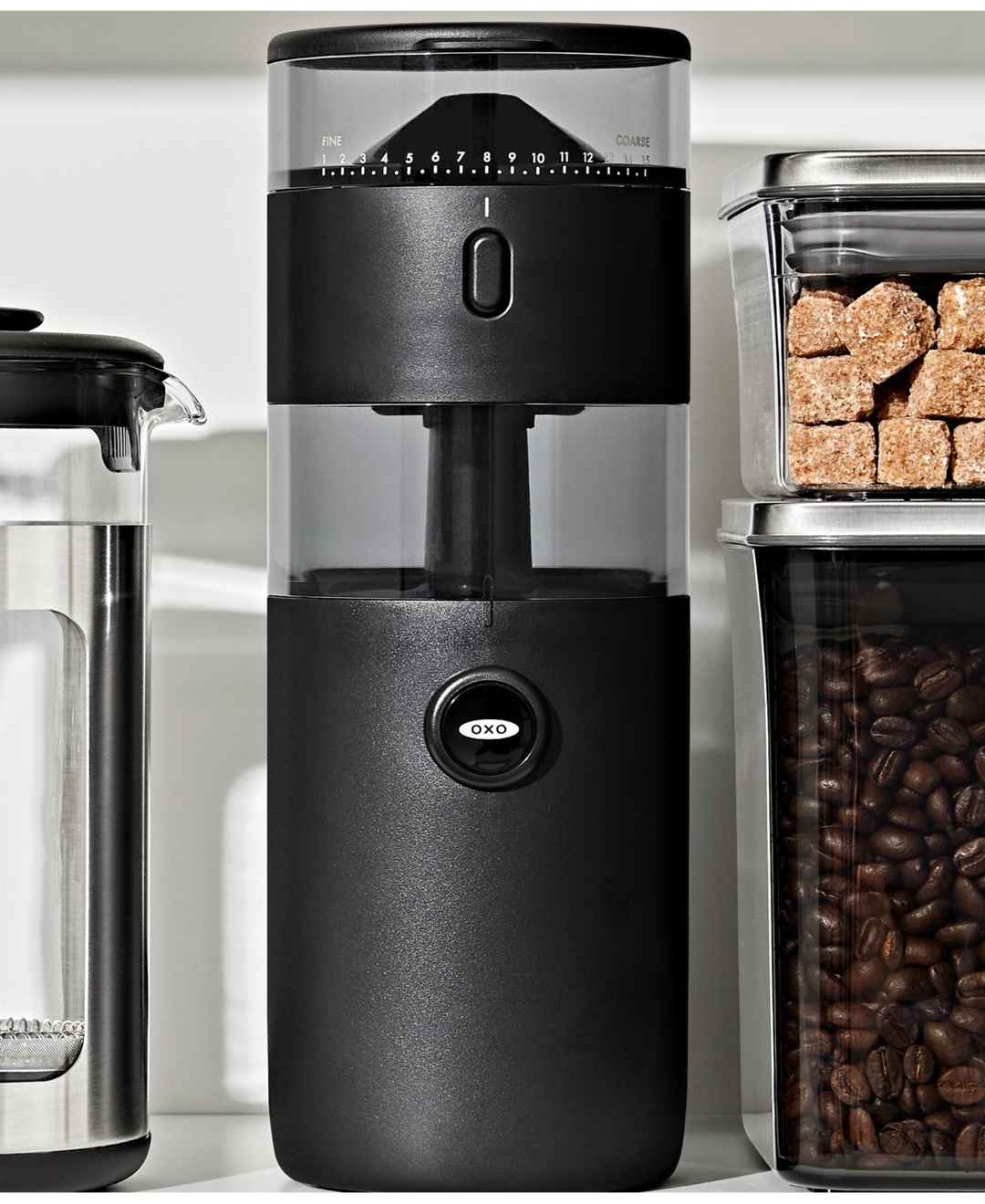 The Oxo Brew Compact Conical Burr Coffee Grinder delivers the power of a full-size electric grinder without the bulk. Choose from 15 settings and 29 micro-adjustments to get your perfect grind time after time. Model 8720800.