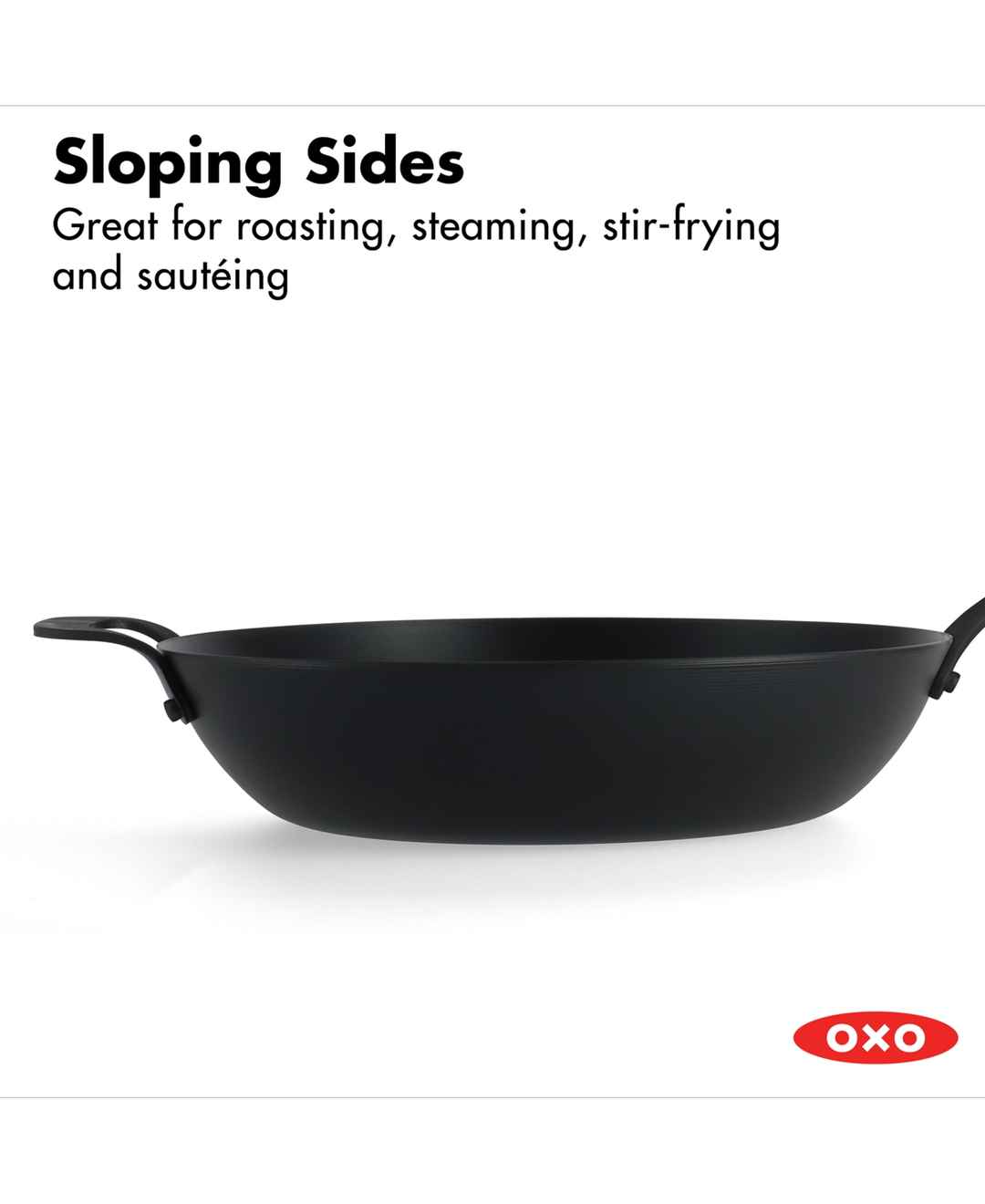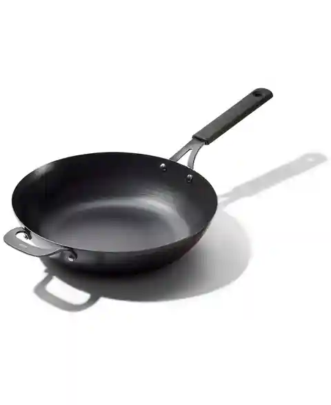 Indoors or out, enjoy all your stir-fried favorites with this Oxo Obsidian wok. It's in lightweight, durable carbon steel that develops a nonstick patina over time.