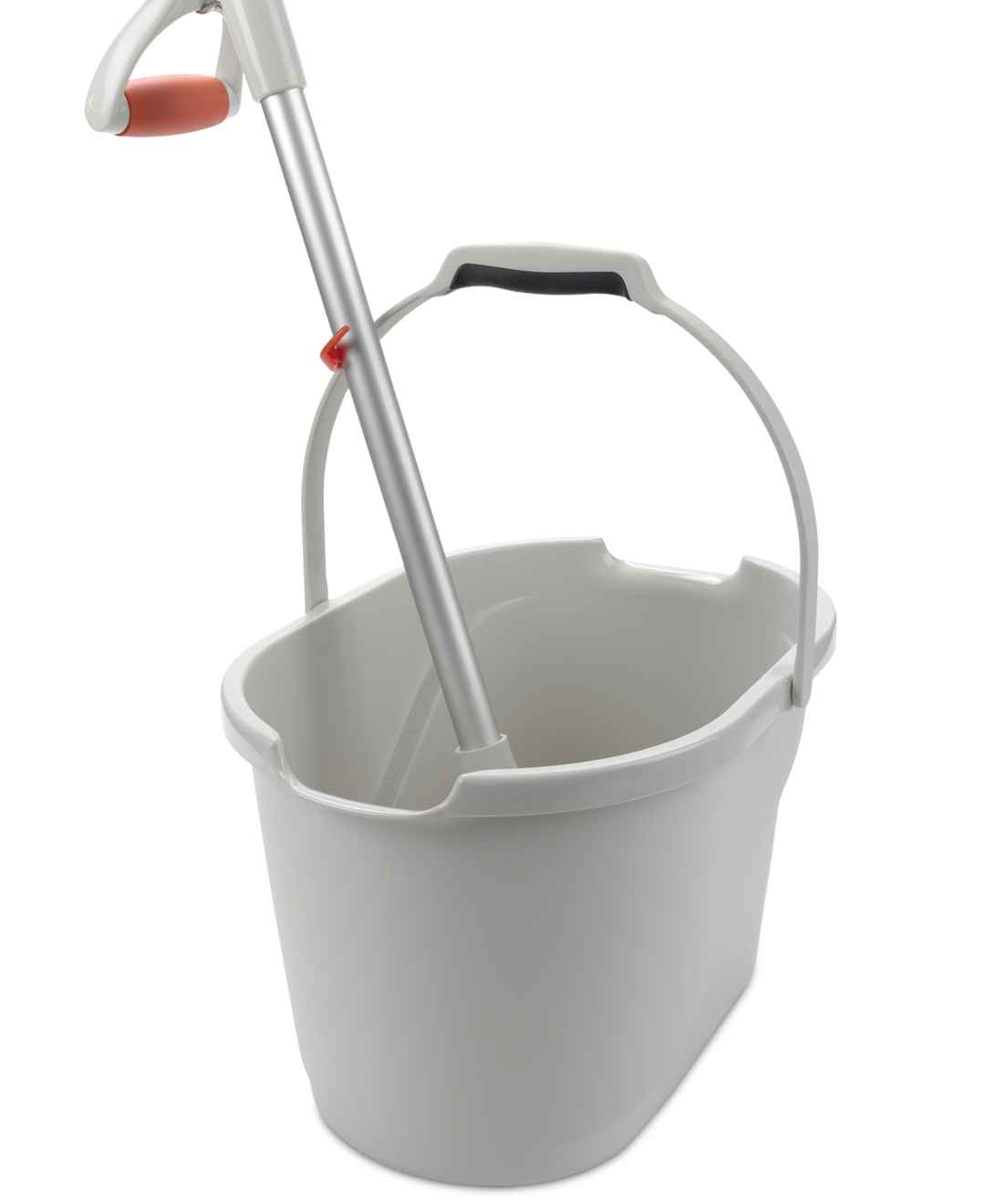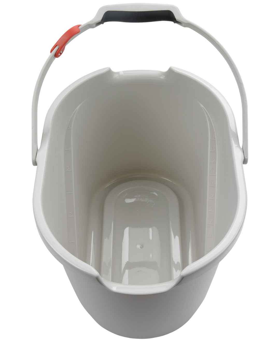 Fill, measure and pour with ease using this handy Good Grips bucket by Oxo. Its top-view, angled measuring surface lets you see just how much is added without bending over - eliminating guesswork. A mop holder keeps your mop upright.