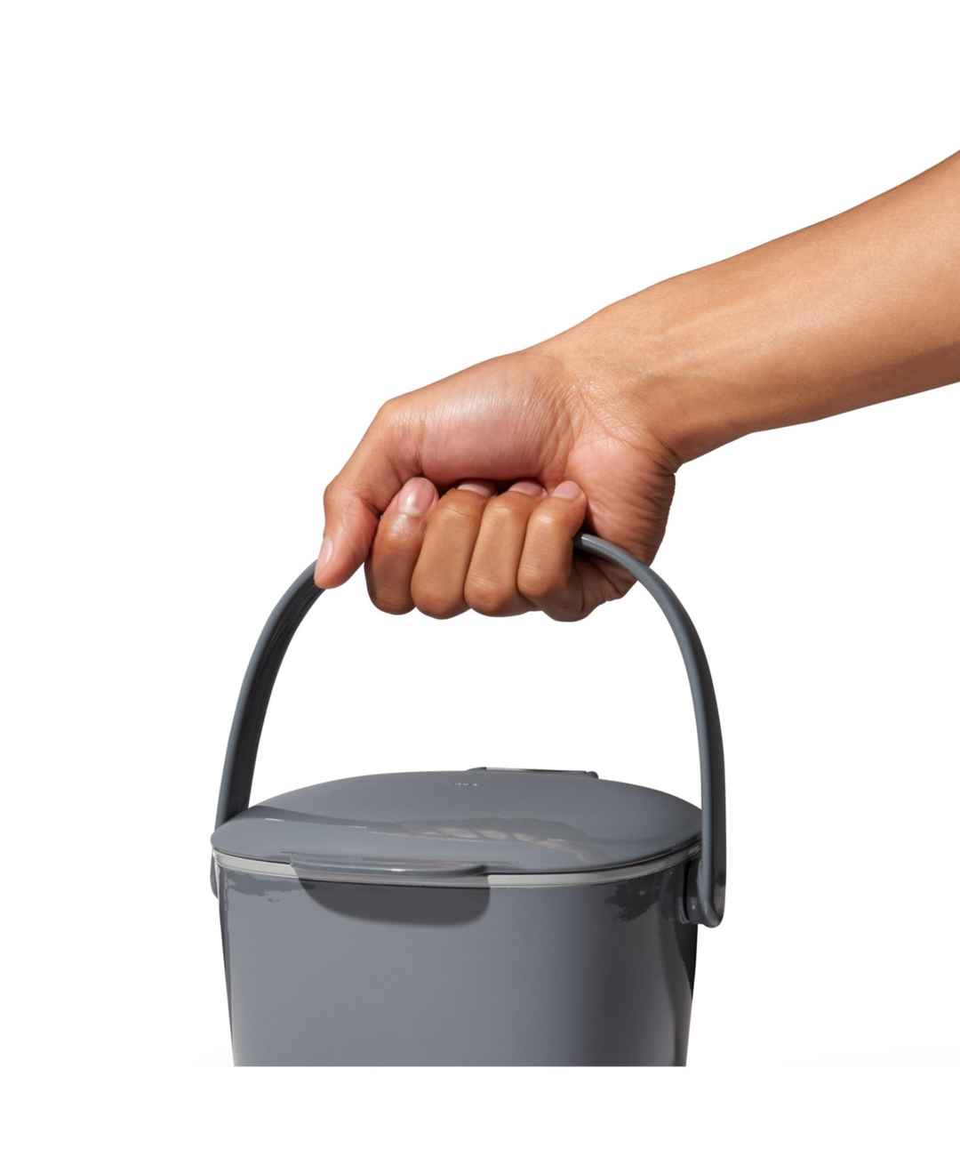 Our countertop-friendly Compost Bin was designed with the home cook in mind. The flip-up lid can be opened and closed with one hand. Smooth interior walls prevent food and liquids from building up and make cleanup simple. The sturdy handle makes it easy to carry the filled Bin outside.
