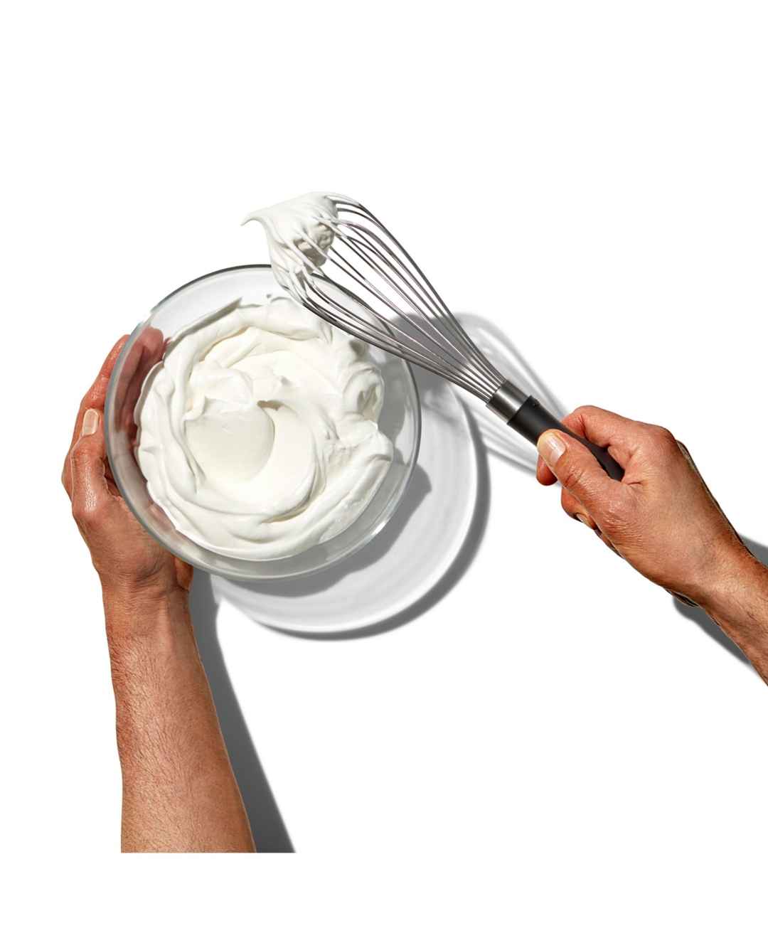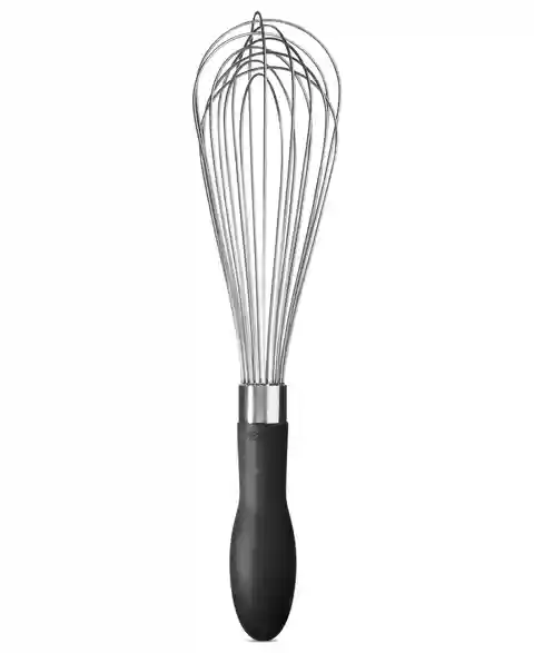Get whisked away. A thoughtful design accommodates all types & shapes of containers and bowls with polished stainless steel wires that are arranged in a narrow, versatile shape. The innovative handle features a comfort grip to absorb pressure and make your job even easier.