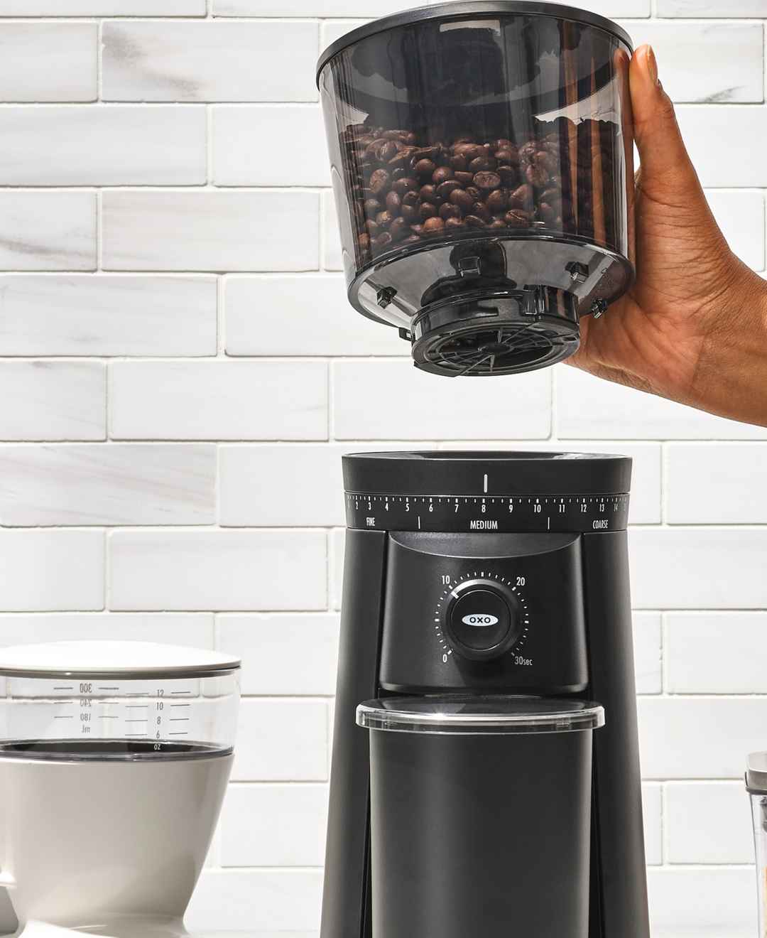 Because the best coffee starts from the grounds up, we created the Oxo Conical Burr Coffee Grinder to help your beans unlock their full potential. The design is simple, so nothing stands between you and your first cup. Model 8722600.