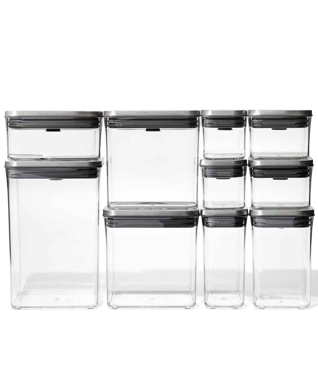 Smart choices for today's kitchens, Oxo's Steel Pop food storage containers feature stainless steel lid accents for a decidedly modern look. This 12-piece set offers a range of shapes and sizes for storing everyday staples plus a half-cup scoop and a set of labels that'll help you take organization ...more