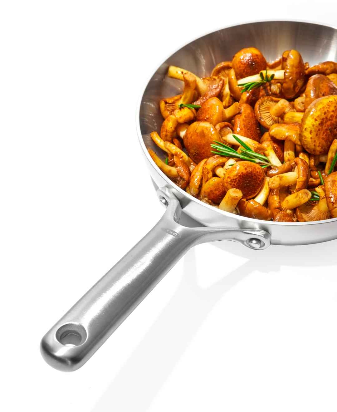 The Oxo Mira 3-ply stainless steel collection is high-performance tri-ply built for modern kitchens. Each piece is crafted with two stainless steel layers and a heat-radiant aluminum core to deliver fast and even cooking. A stain-resistant finish on each exterior prevents heat discoloration. The mix...more