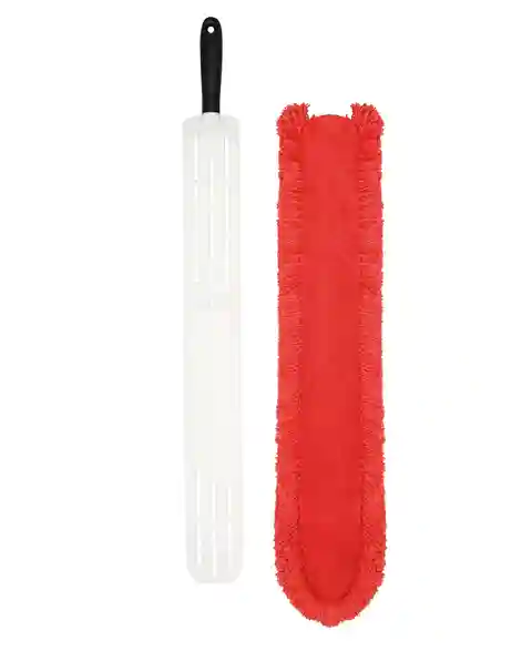 Our slim duster features a long, flat profile to go where other dusters don't- around and underneath appliances and cabinets. The long, fluffy fibers conform to uneven surfaces to capture dust bunnies. To clean the head, simply unsnap it and wash in cold water, then dry without heat.