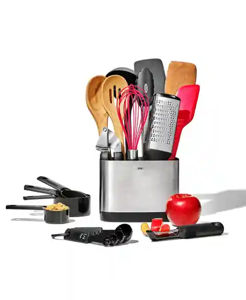 A perfect registry addition for engaged couples, first-time homeowners, college-bound students or anyone looking to replace their kitchenware, the Oxo Good Grips 20-piece ultimate kitchen utensil set has the essentials every home cook needs, and our stainless steel utensil holder to keep it all tidy...more