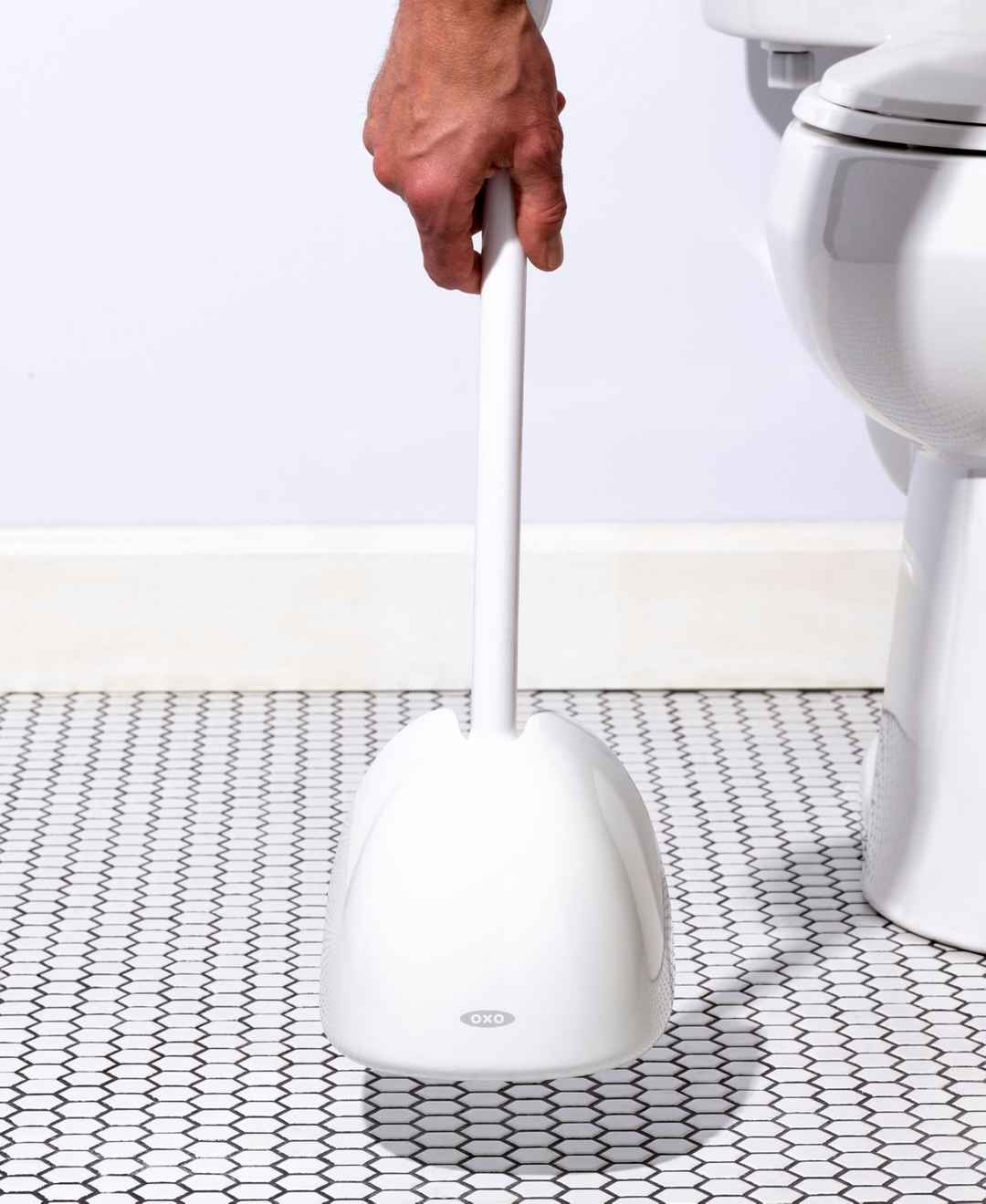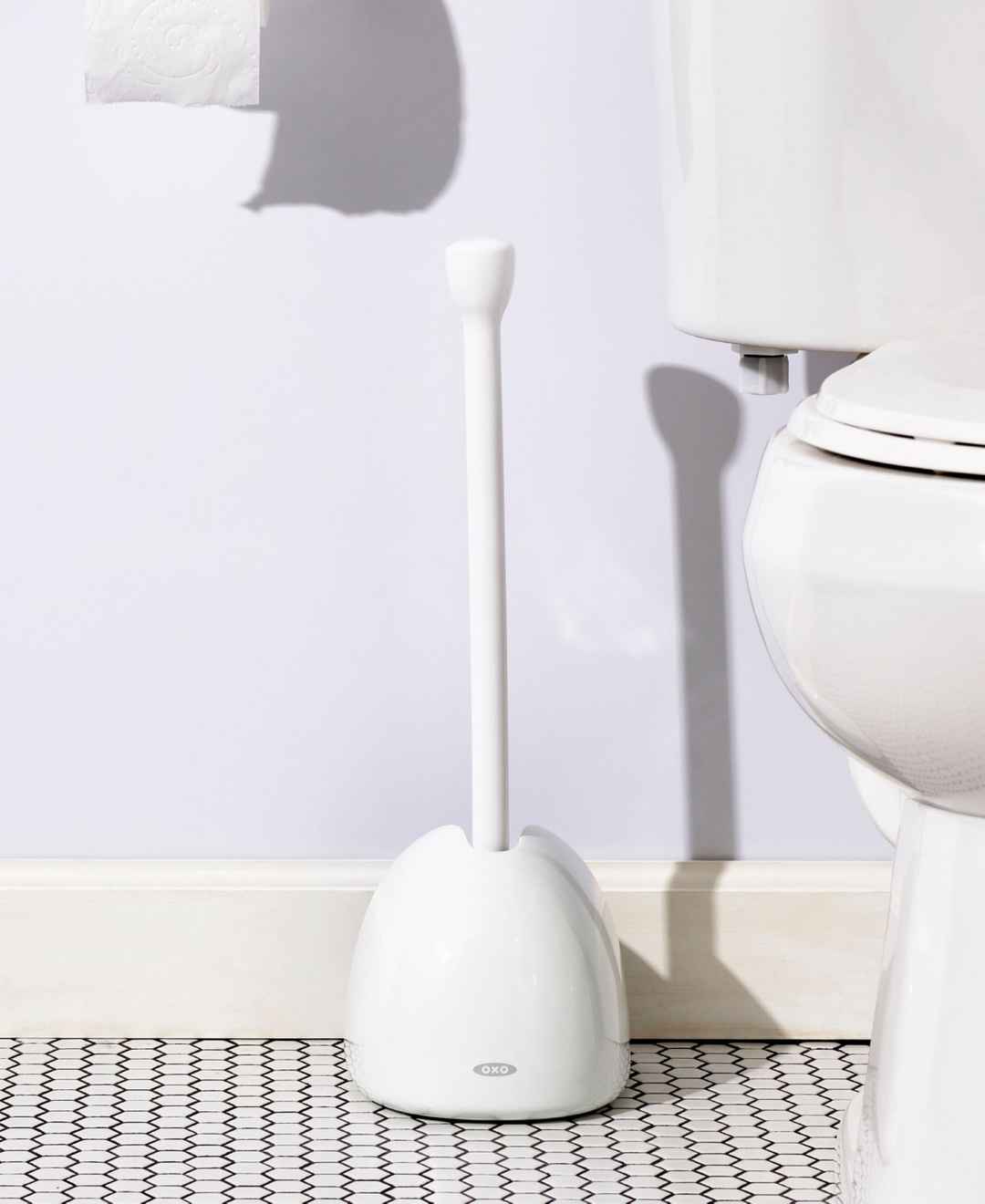 Store your toilet plunger anywhere you like without worrying about making a mess. With the Oxo good grips toilet plunger with cover, you've got options. The compact plunger fits neatly anywhere, including under the bathroom sink, thanks to its right-sized handle. The smart cover has a tray that catc...more
